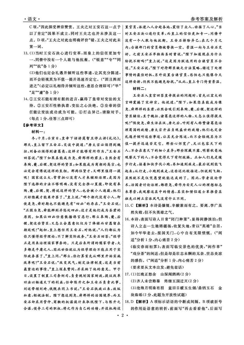 语文试题及答案解析