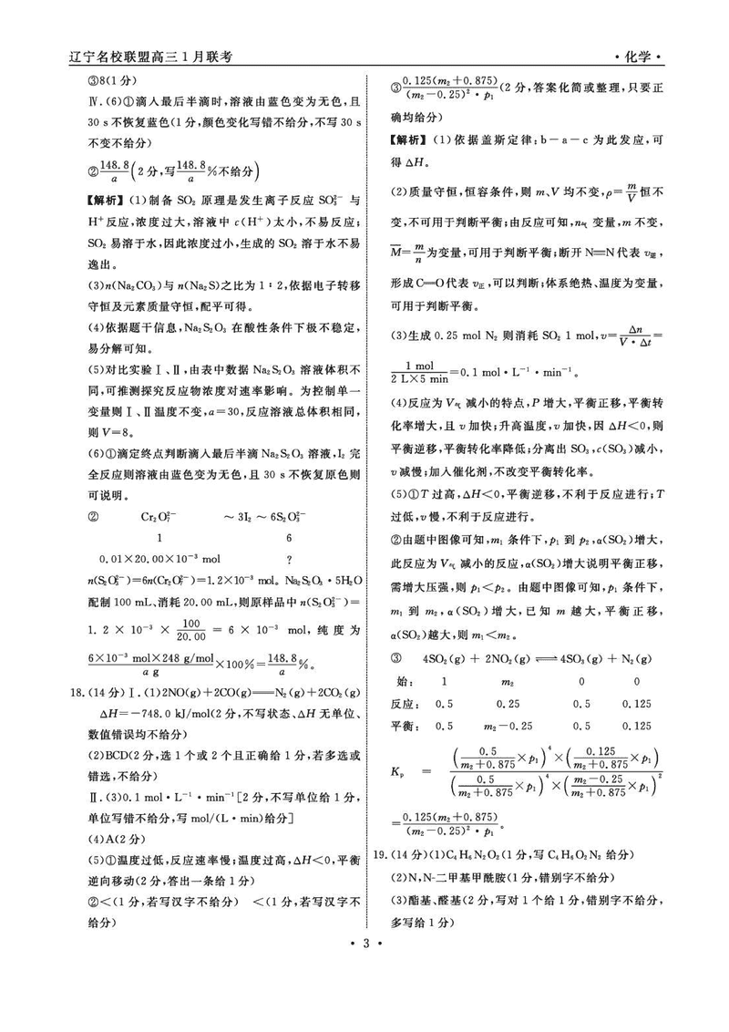 辽宁名校联盟2025年高三上学期1月联考化学试题及答案