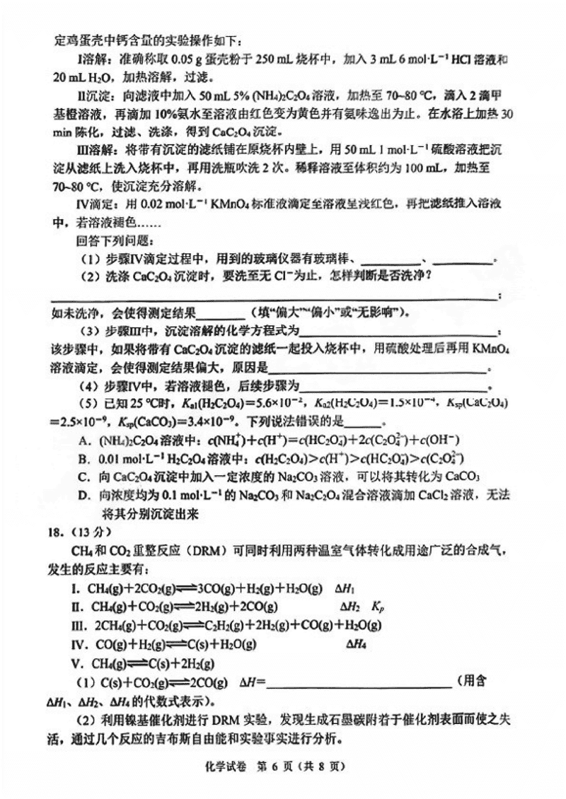 化学试题及答案解析