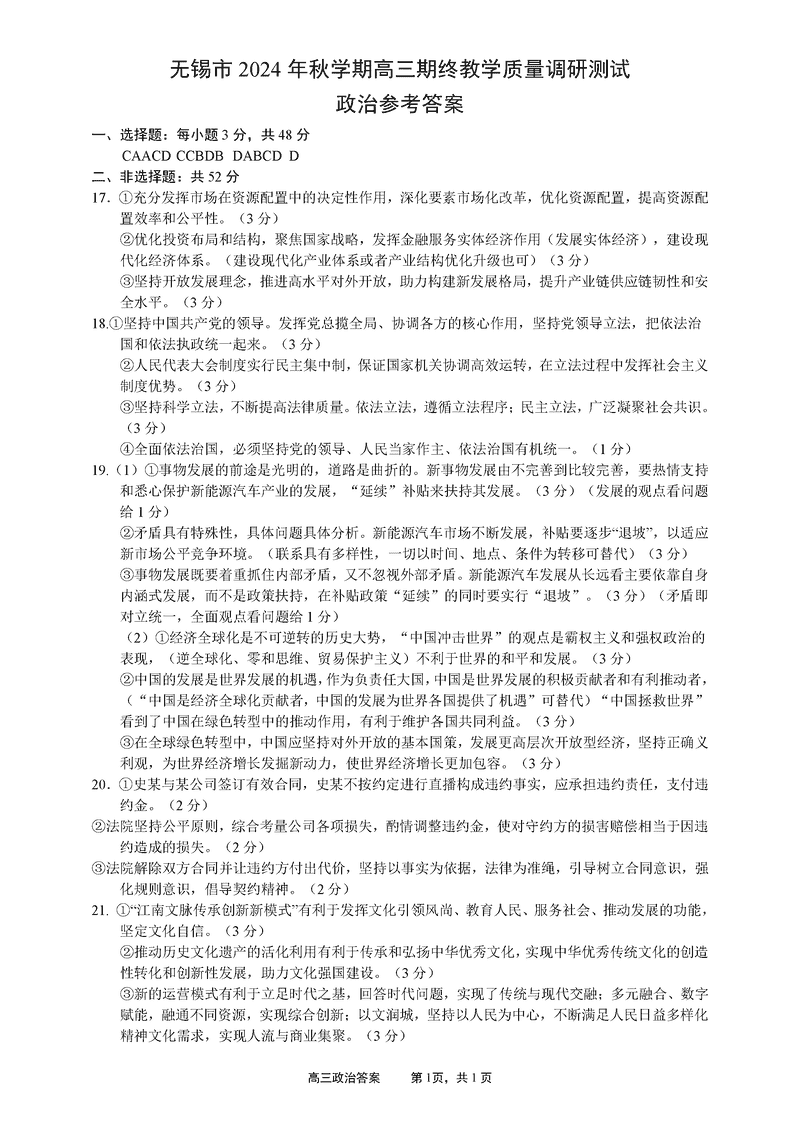 江苏无锡2025届高三期终教学质量调研政治试题及答案 时间:2025-01-17 江苏 文综试题 江苏无锡2025届高三期终教学质量调研政治考试已于近日开考,为方便考生考后及时查看考试情况,查漏补缺、弥补不足,本文整理了试题答案解析相关信息! 汇总:江苏无锡2025届高三期终教学质量调研试题及答案汇总 政治试题及答案解析