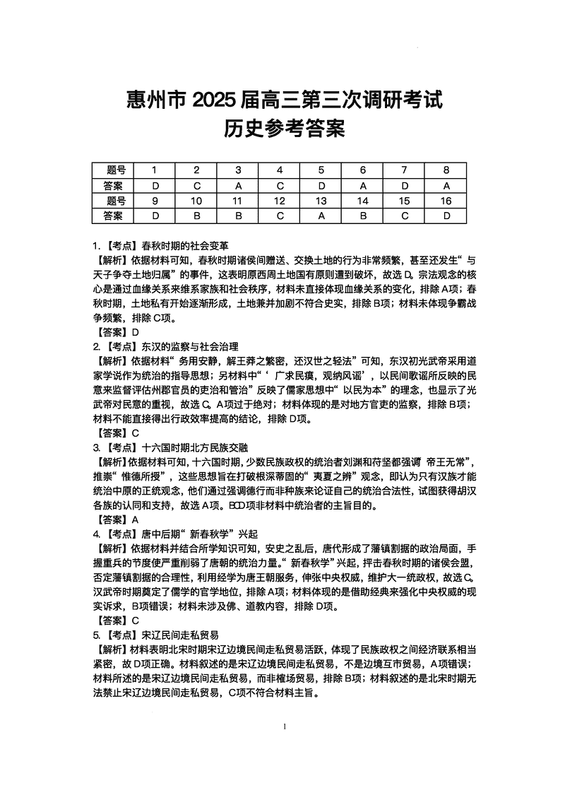 惠州三调2025届高三第三次调研历史试题及答案 时间:2025-01-17 广东 文综试题 惠州三调2025届高三第三次调研历史考试已于近日开考,为方便考生考后及时查看考试情况,查漏补缺、弥补不足,本文整理了试题答案解析相关信息! 汇总:惠州三调2025届高三第三次调研考试试题及答案汇总 历史试题及答案解析