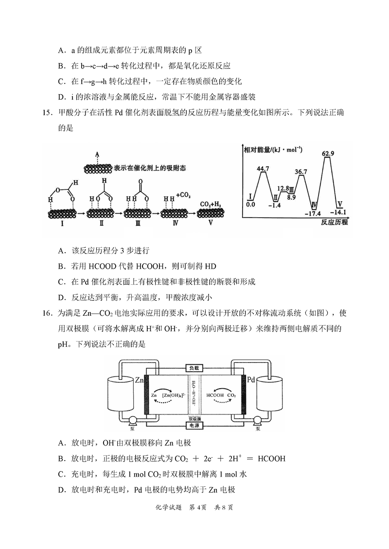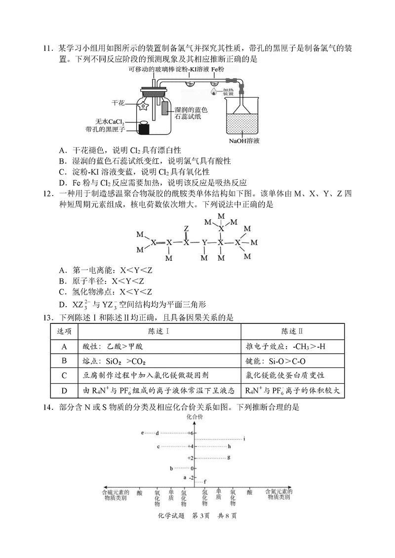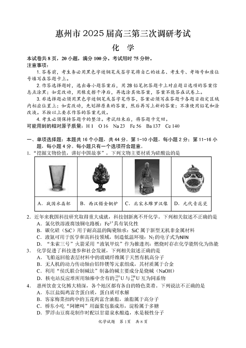 惠州三调2025届高三第三次调研化学试题及答案