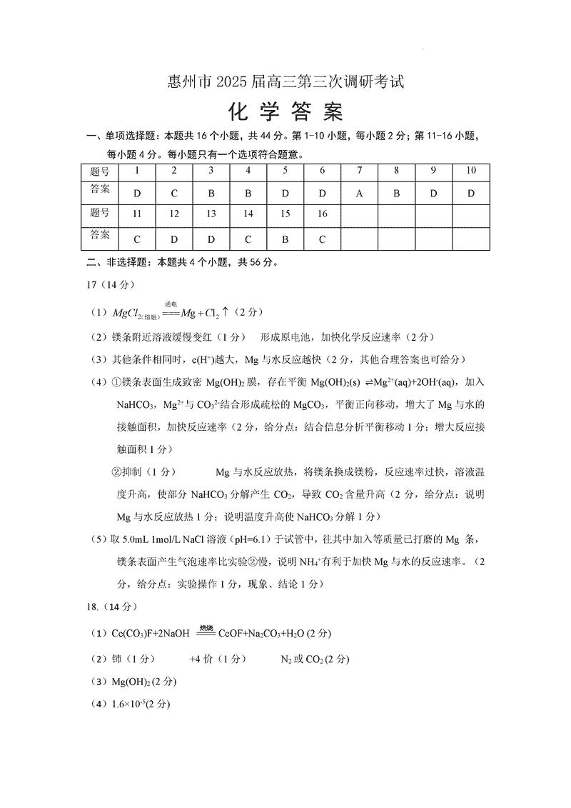 惠州三调2025届高三第三次调研化学考试已于近日开考,为方便考生考后及时查看考试情况,查漏补缺、弥补不足,本文整理了试题答案解析相关信息!