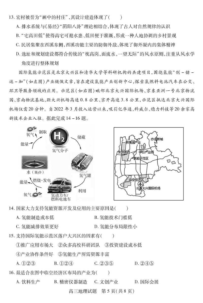运城市2025年1月高三上学期期末调研地理试题及答案