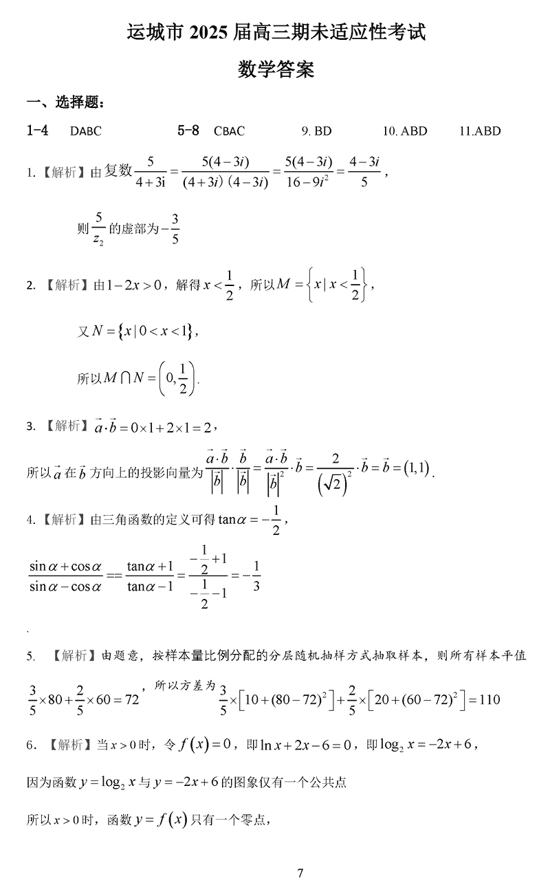 运城市2025年1月高三上学期期末调研数学考试已于近日开考,为方便考生考后及时查看考试情况,查漏补缺、弥补不足,本文整理了试题答案解析相关信息!