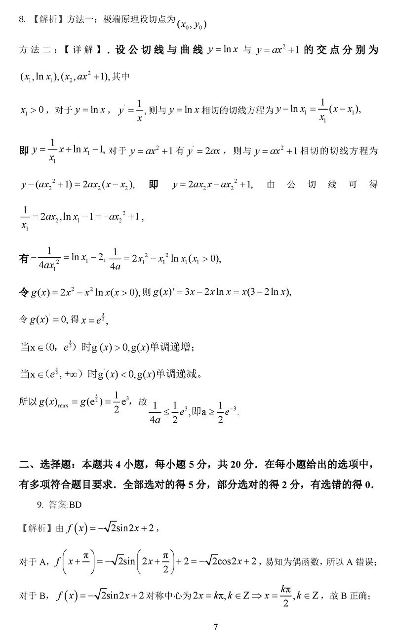数学试题及答案解析