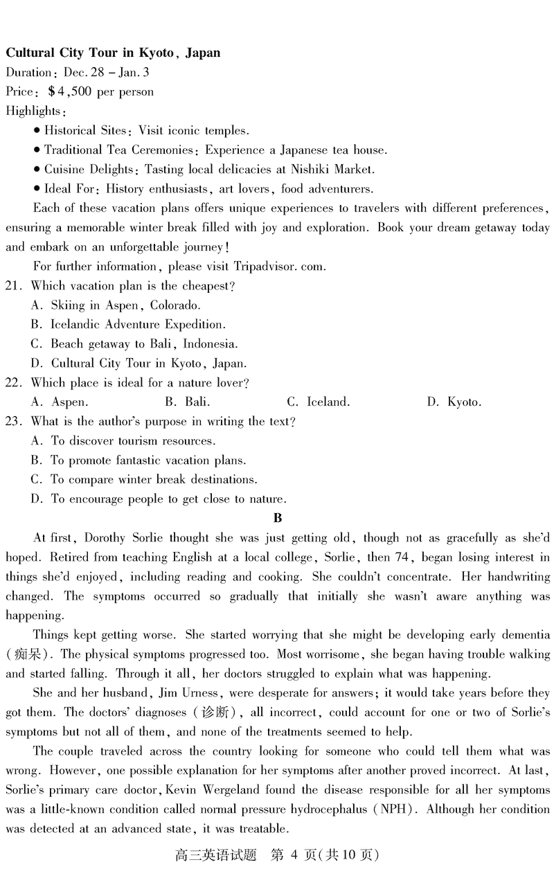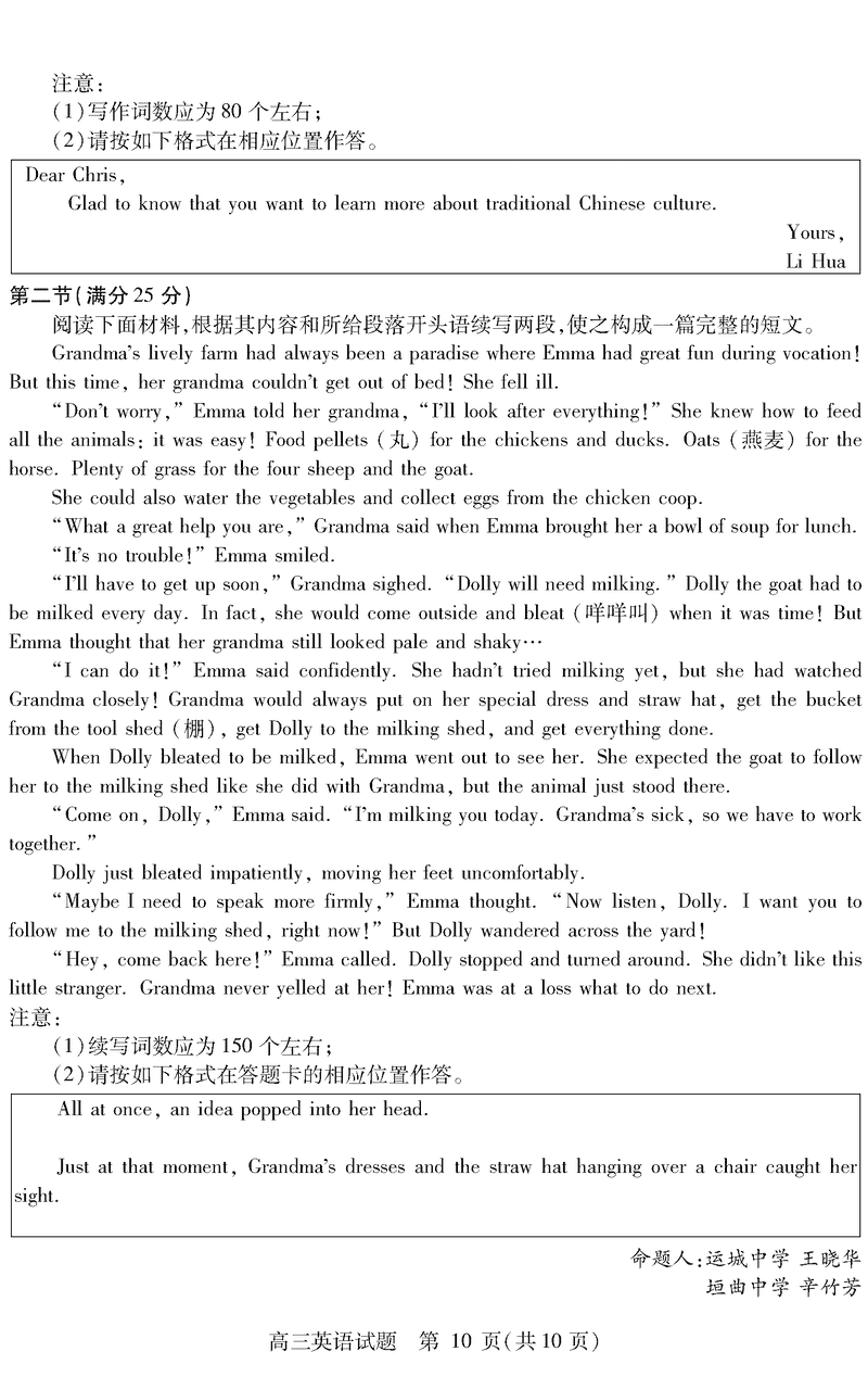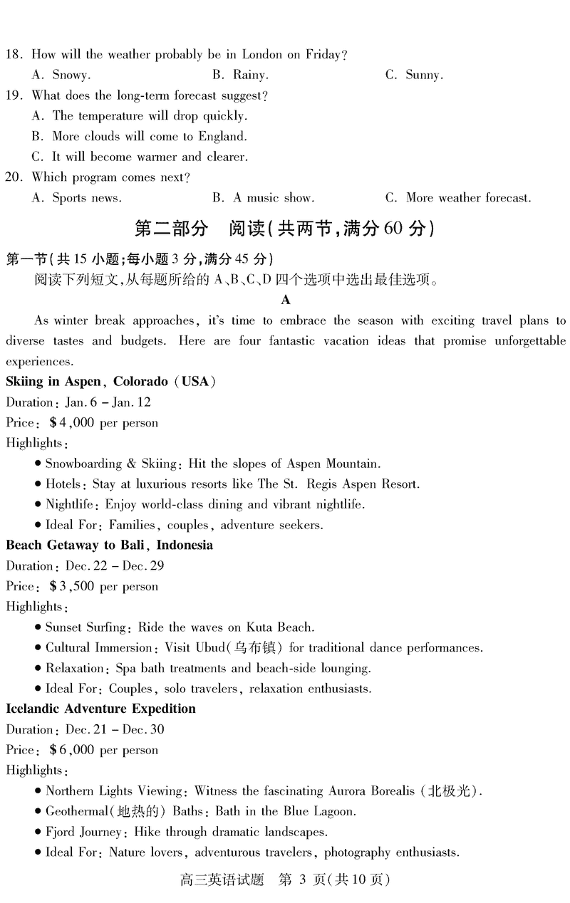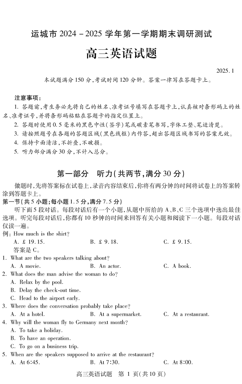 运城市2025年1月高三上学期期末调研英语试题及答案