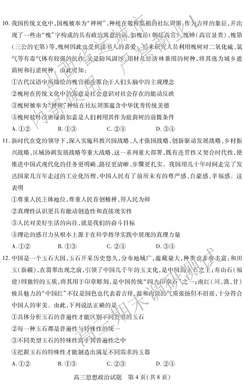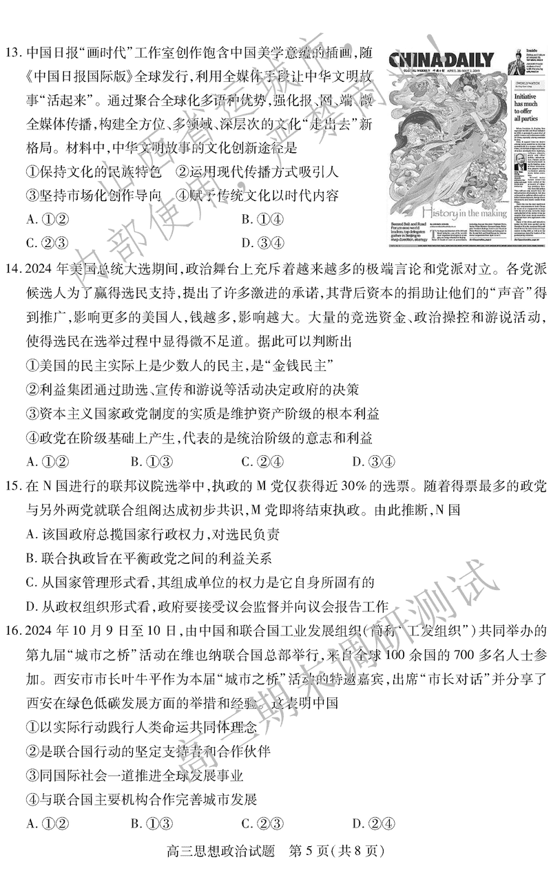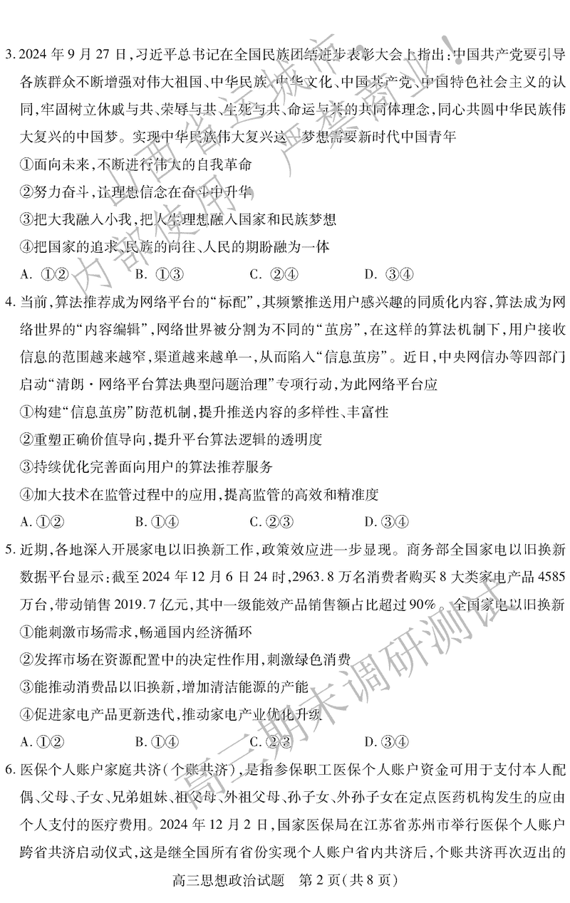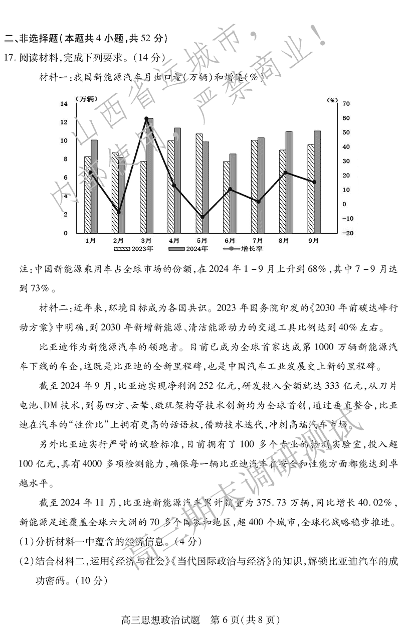 运城市2025年1月高三上学期期末调研政治试题及答案