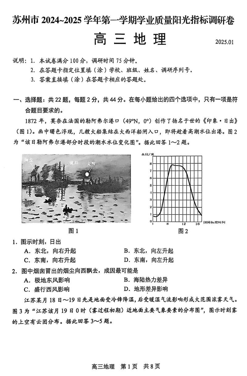 江苏苏州2025学年高三上学期1月期末地理试题及答案 时间:2025-01-18 江苏 文综试题 江苏苏州2025学年高三上学期1月期末地理考试已于近日开考,为方便考生考后及时查看考试情况,查漏补缺、弥补不足,本文整理了试题答案解析相关信息! 汇总:江苏苏州2025学年高三上学期1月期末试题及答案汇总 地理试题及答案解析