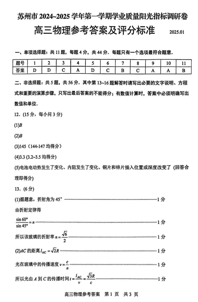 江苏苏州2025学年高三上学期1月期末物理试题及答案 时间:2025-01-18 江苏 理综试题 江苏苏州2025学年高三上学期1月期末物理考试已于近日开考,为方便考生考后及时查看考试情况,查漏补缺、弥补不足,本文整理了试题答案解析相关信息! 汇总:江苏苏州2025学年高三上学期1月期末试题及答案汇总 物理试题及答案解析