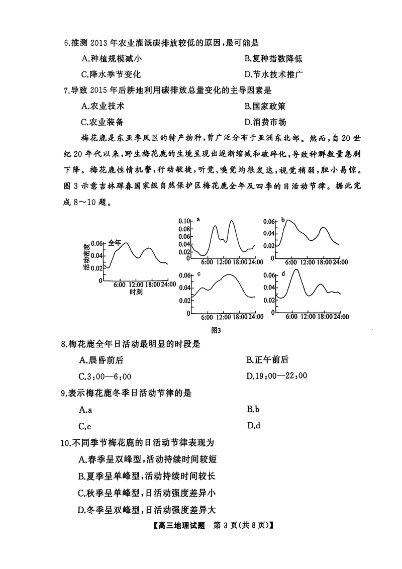 湖南永州2025年高考第二次模考地理试题及答案