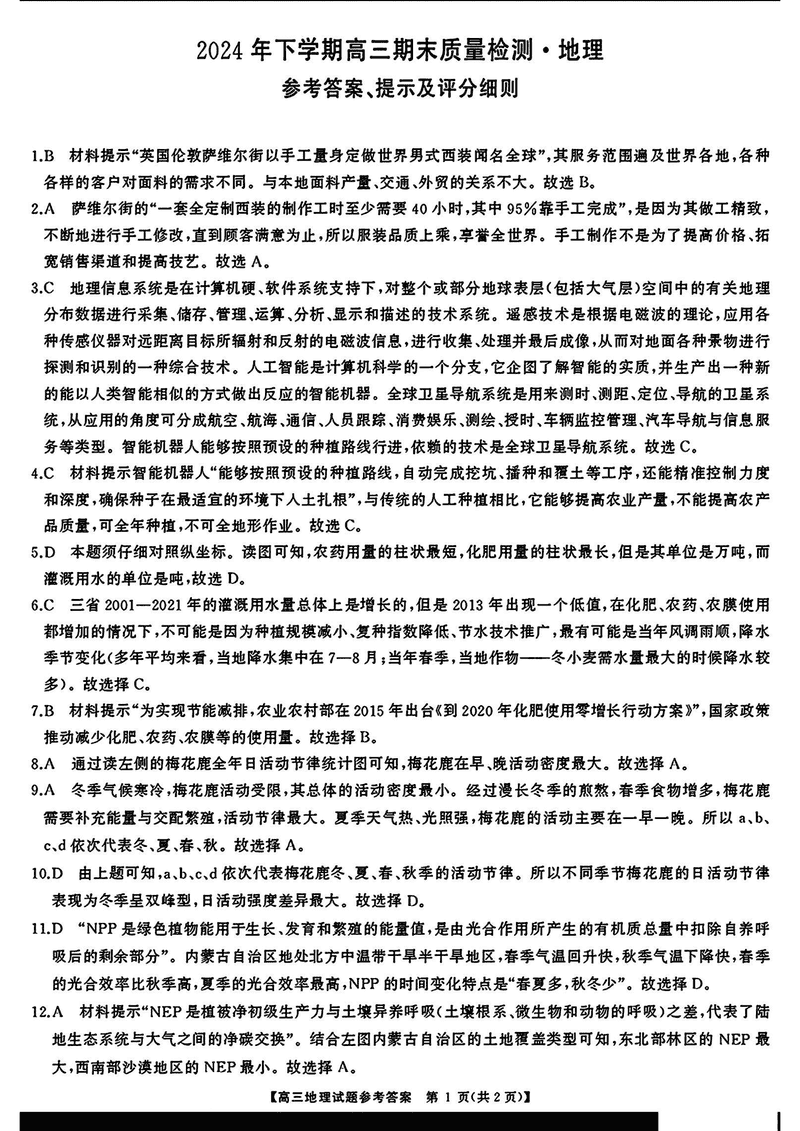 地理试题及答案解析