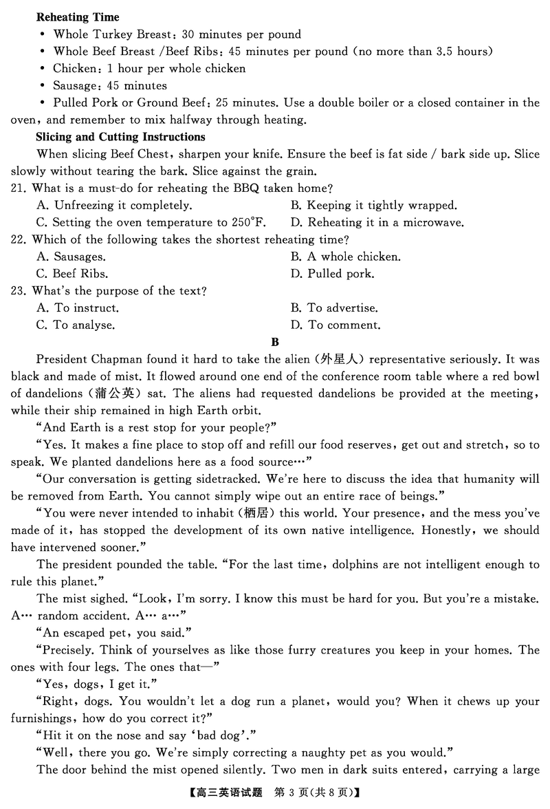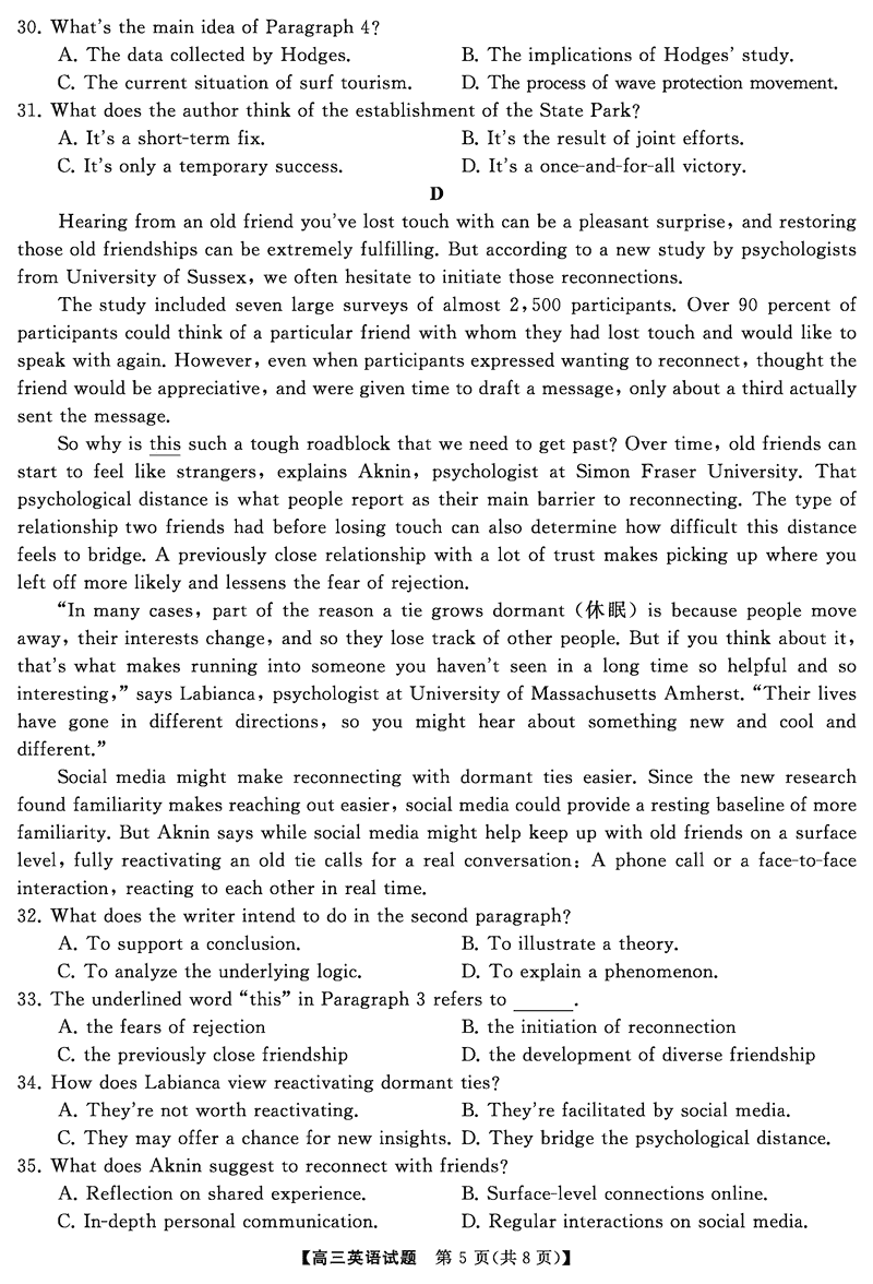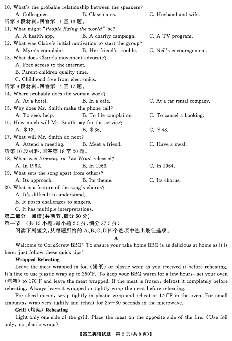 湖南永州2025年高考第二次模考英语试题及答案