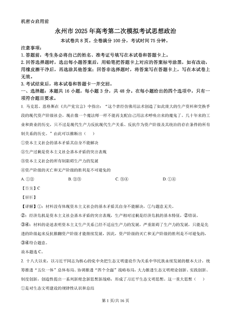湖南永州2025年高考第二次模考政治考试已于近日开考,为方便考生考后及时查看考试情况,查漏补缺、弥补不足,本文整理了试题答案解析相关信息!