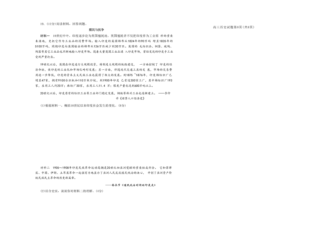 潍坊市、临沂市2025届高三上学期期末历史试题及答案