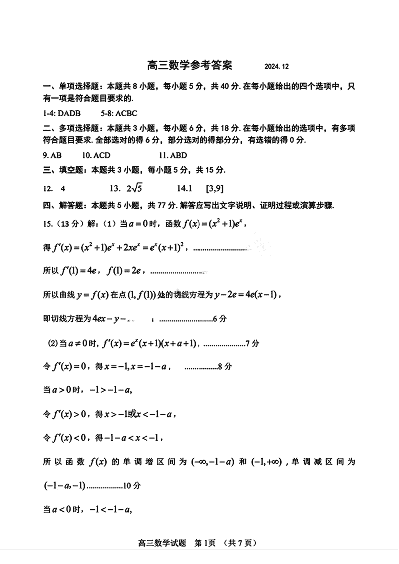 潍坊市、临沂市2025届高三上学期期末数学试题及答案