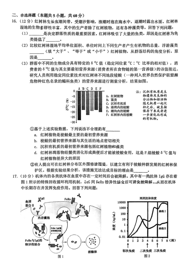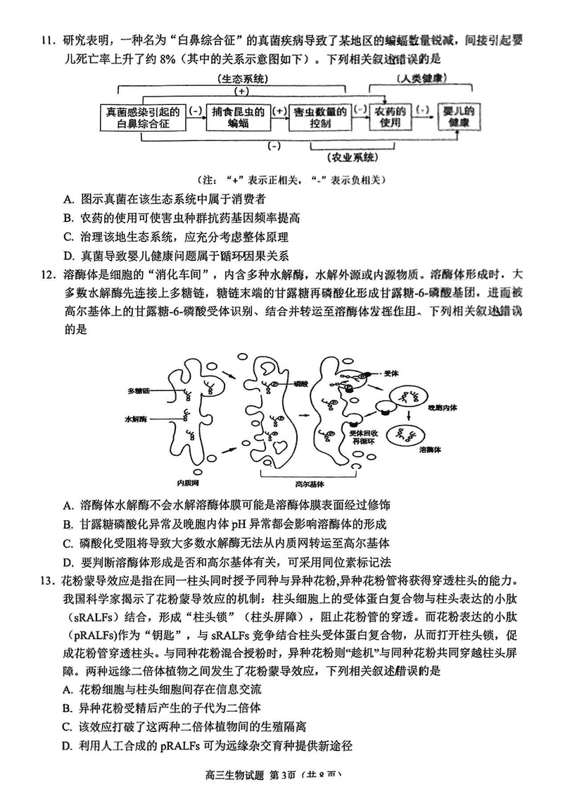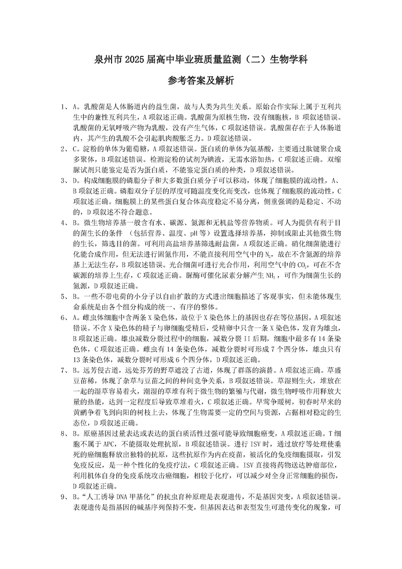 福建泉州2025届高中毕业班质量监测(二)生物考试已于近日开考,为方便考生考后及时查看考试情况,查漏补缺、弥补不足,本文整理了试题答案解析相关信息!