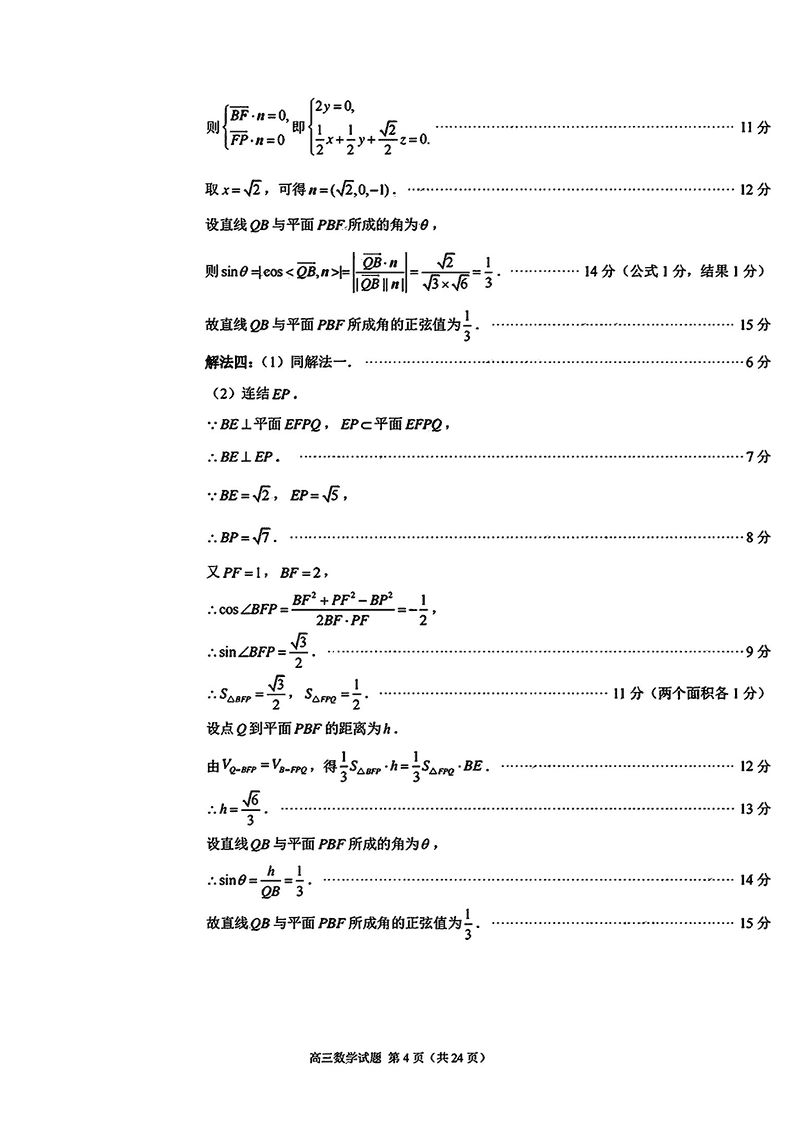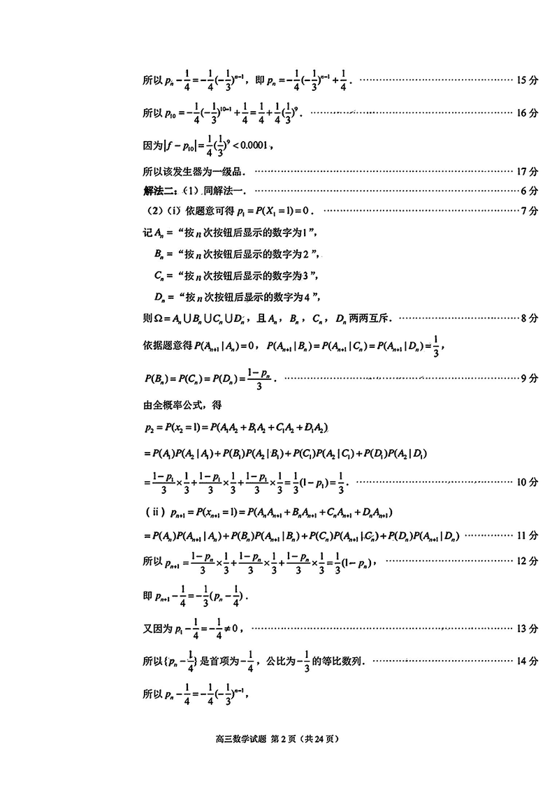 福建泉州2025届高中毕业班质量监测(二)数学试题及答案