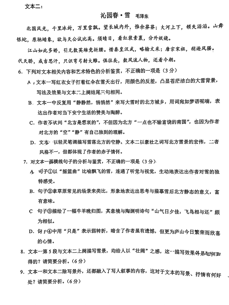 福建泉州2025届高中毕业班质量监测(二)语文试题及答案