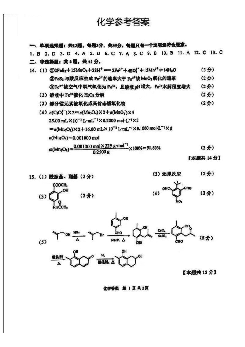 江苏南通2025年高三上学期一模化学试题及答案 时间:2025-01-20 江苏 理综试题 江苏南通2025年高三上学期一模化学考试已于近日开考,为方便考生考后及时查看考试情况,查漏补缺、弥补不足,本文整理了试题答案解析相关信息! 汇总:江苏南通2025年高三上学期一模试题及答案汇总 化学试题及答案解析
