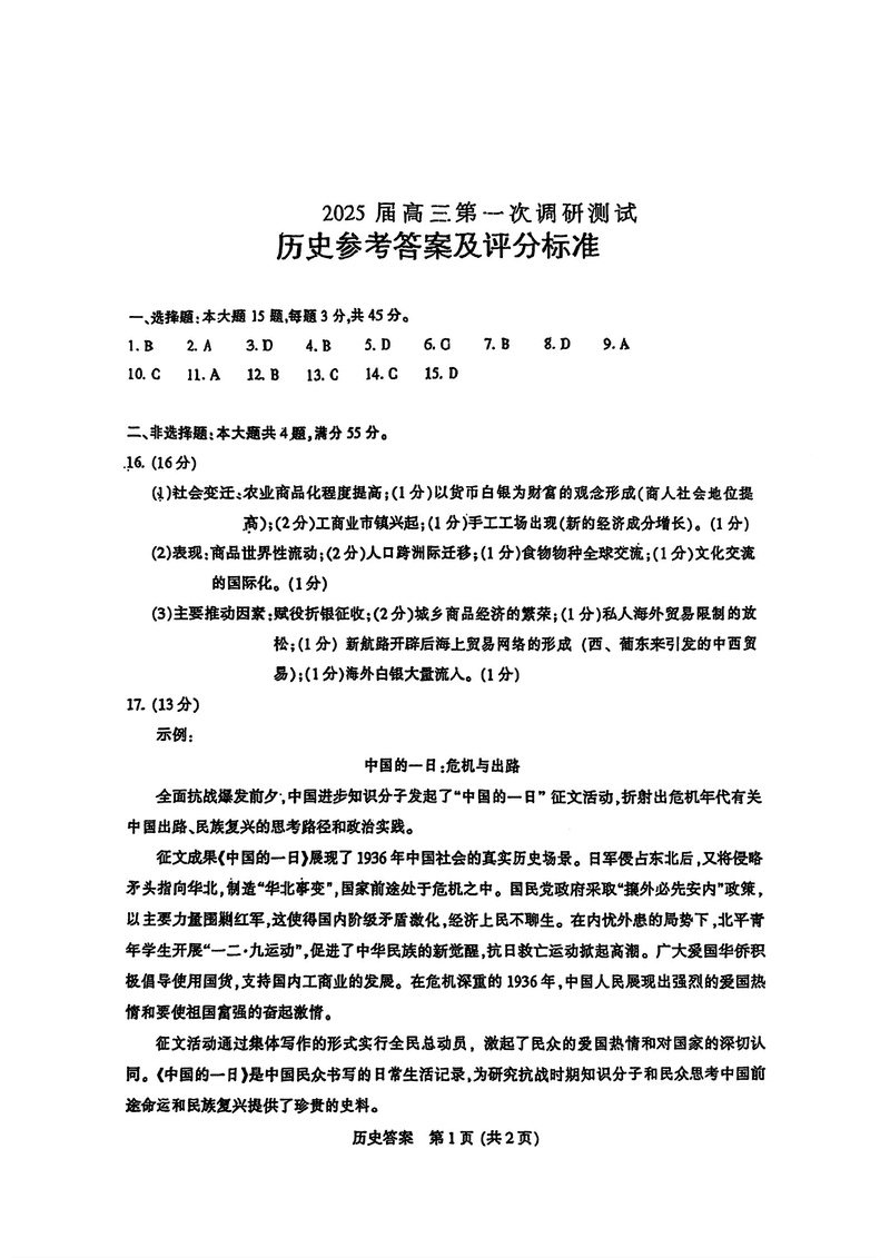 江苏南通2025年高三上学期一模历史试题及答案 时间:2025-01-20 江苏 文综试题 江苏南通2025年高三上学期一模历史考试已于近日开考,为方便考生考后及时查看考试情况,查漏补缺、弥补不足,本文整理了试题答案解析相关信息! 汇总:江苏南通2025年高三上学期一模试题及答案汇总 历史试题及答案解析