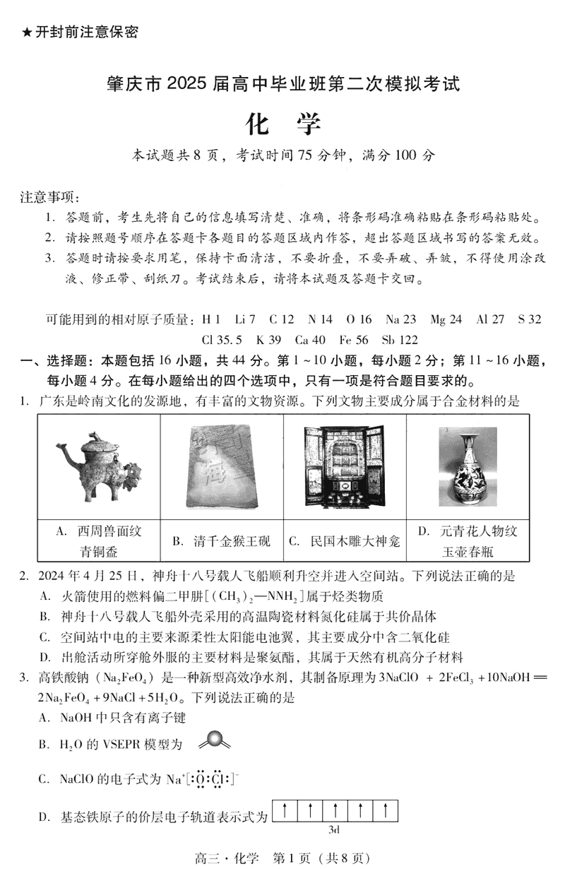 肇庆市2025届高三第二次模考暨汕尾期末化学考试已于近日开考,为方便考生考后及时查看考试情况,查漏补缺、弥补不足,本文整理了试题答案解析相关信息!