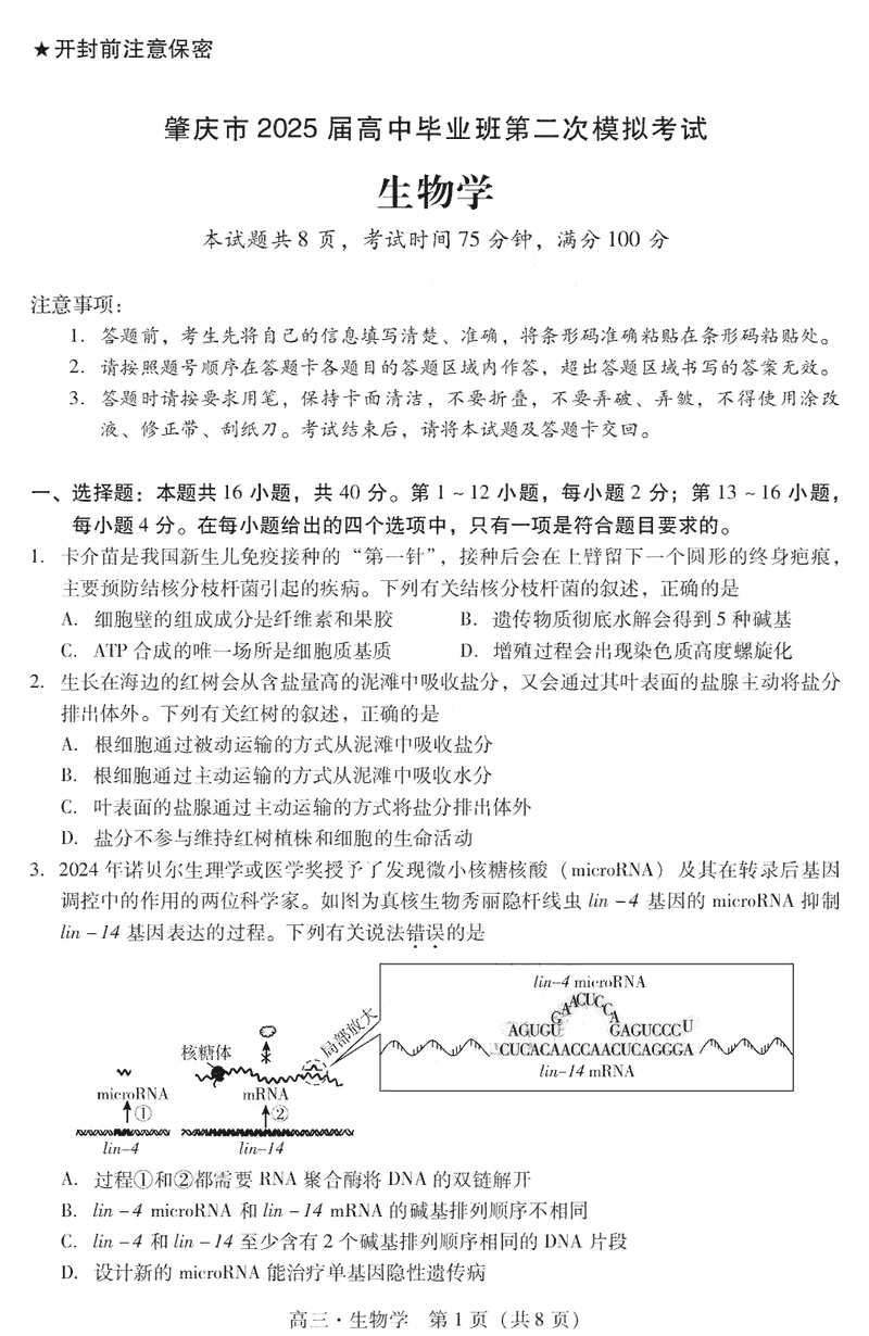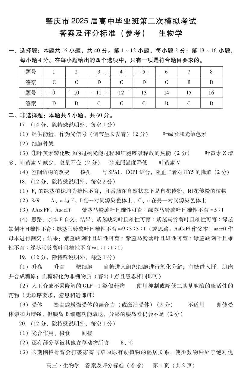 肇庆市2025届高三第二次模考暨汕尾期末生物考试已于近日开考,为方便考生考后及时查看考试情况,查漏补缺、弥补不足,本文整理了试题答案解析相关信息!