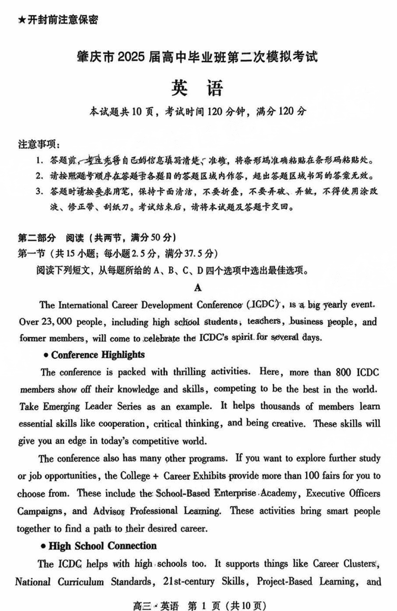 肇庆市2025届高三第二次模考暨汕尾期末英语考试已于近日开考,为方便考生考后及时查看考试情况,查漏补缺、弥补不足,本文整理了试题答案解析相关信息!