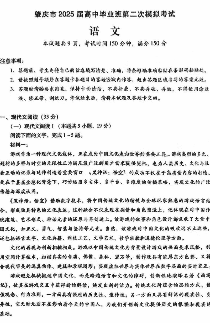 肇庆市2025届高三第二次模考暨汕尾期末语文考试已于近日开考,为方便考生考后及时查看考试情况,查漏补缺、弥补不足,本文整理了试题答案解析相关信息!