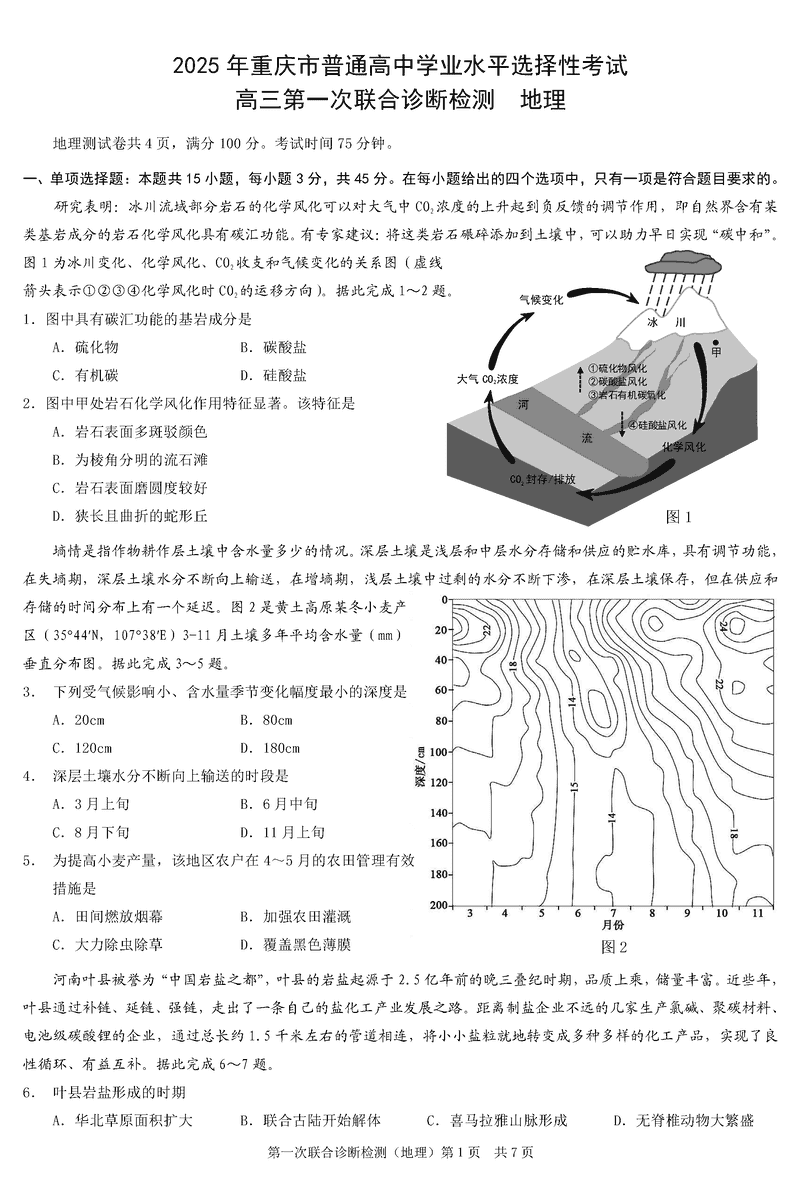 重庆市2025年康德一诊地理试题及答案 时间:2025-01-20 重庆 文综试题 重庆市2025年康德一诊地理考试已于近日开考,为方便考生考后及时查看考试情况,查漏补缺、弥补不足,本文整理了试题答案解析相关信息! 汇总:重庆市2025年康德一诊试题及答案汇总 地理试题及答案解析