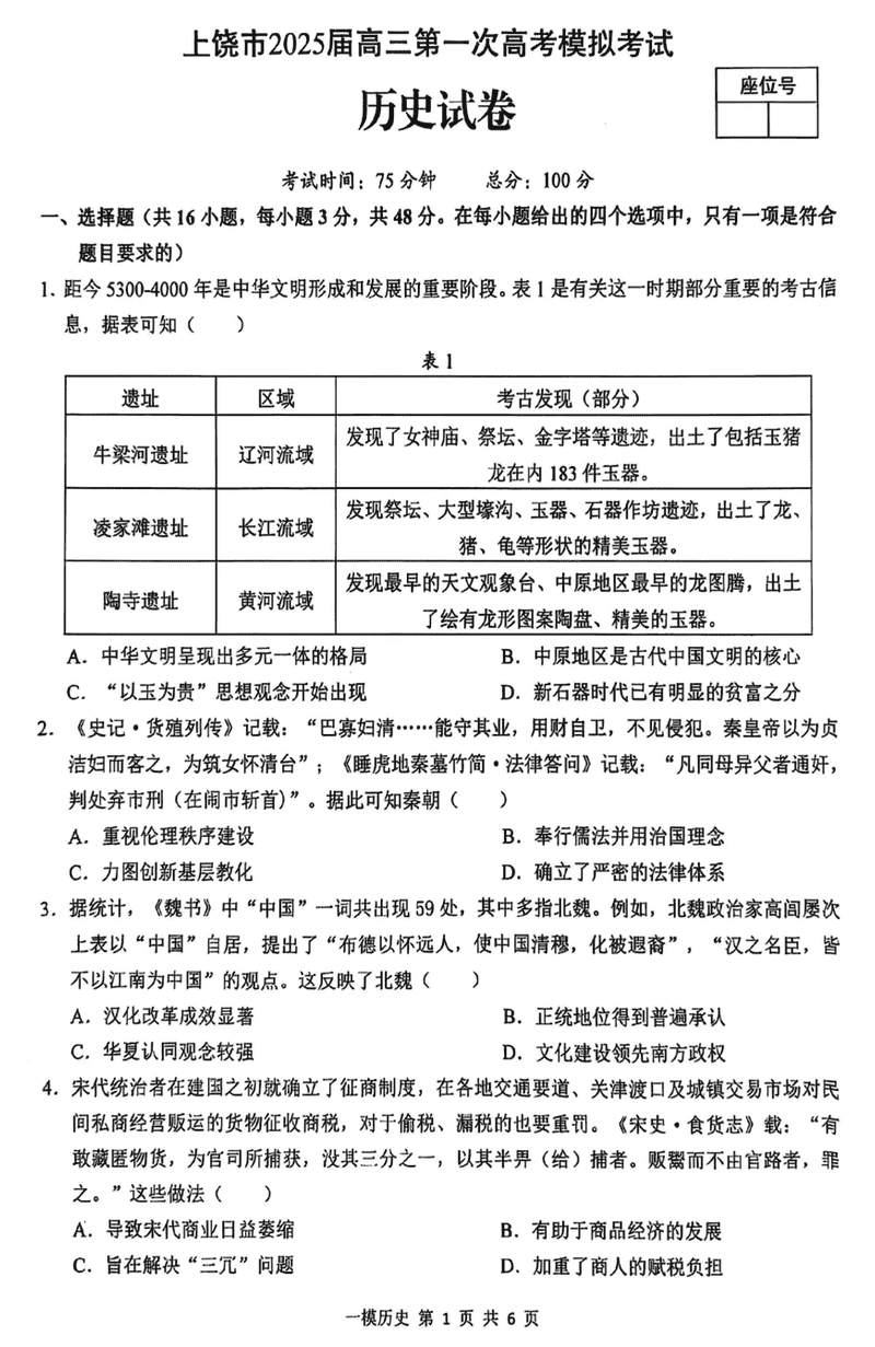 江西上饶2025届高三第一次高考模考历史考试已于近日开考,为方便考生考后及时查看考试情况,查漏补缺、弥补不足,本文整理了试题答案解析相关信息!