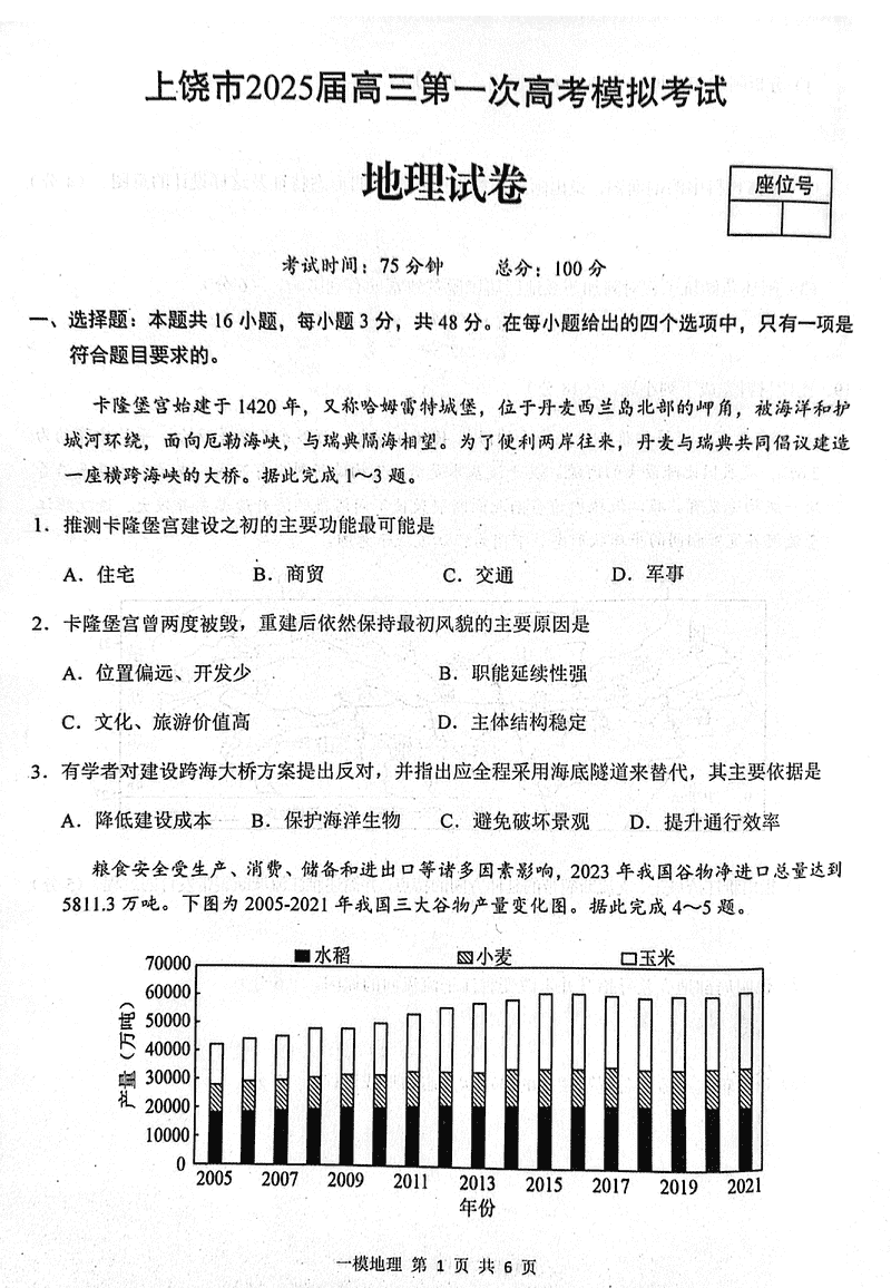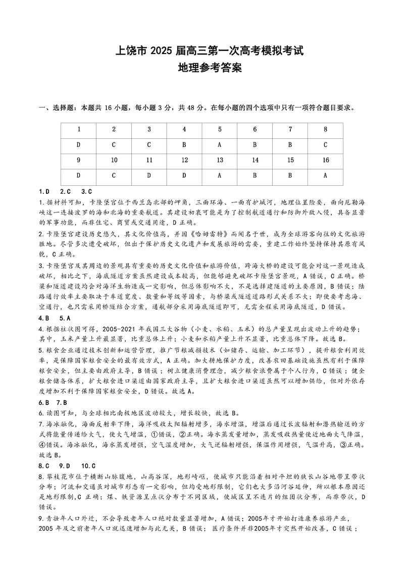 江西上饶2025届高三第一次高考模考地理考试已于近日开考,为方便考生考后及时查看考试情况,查漏补缺、弥补不足,本文整理了试题答案解析相关信息!