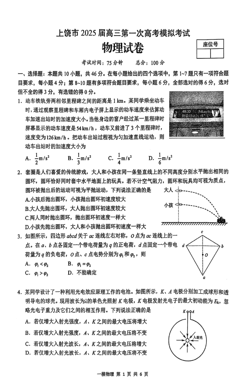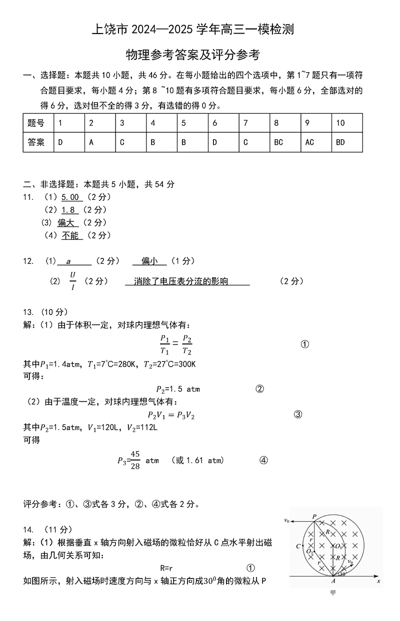 江西上饶2025届高三第一次高考模考物理考试已于近日开考,为方便考生考后及时查看考试情况,查漏补缺、弥补不足,本文整理了试题答案解析相关信息!