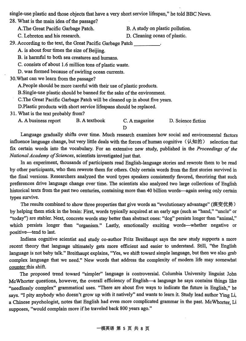 英语试题及答案解析