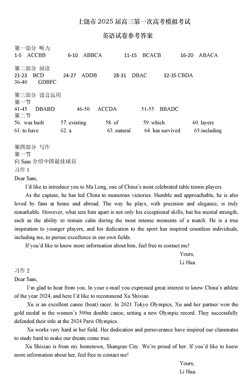 江西上饶2025届高三第一次高考模考英语考试已于近日开考,为方便考生考后及时查看考试情况,查漏补缺、弥补不足,本文整理了试题答案解析相关信息!