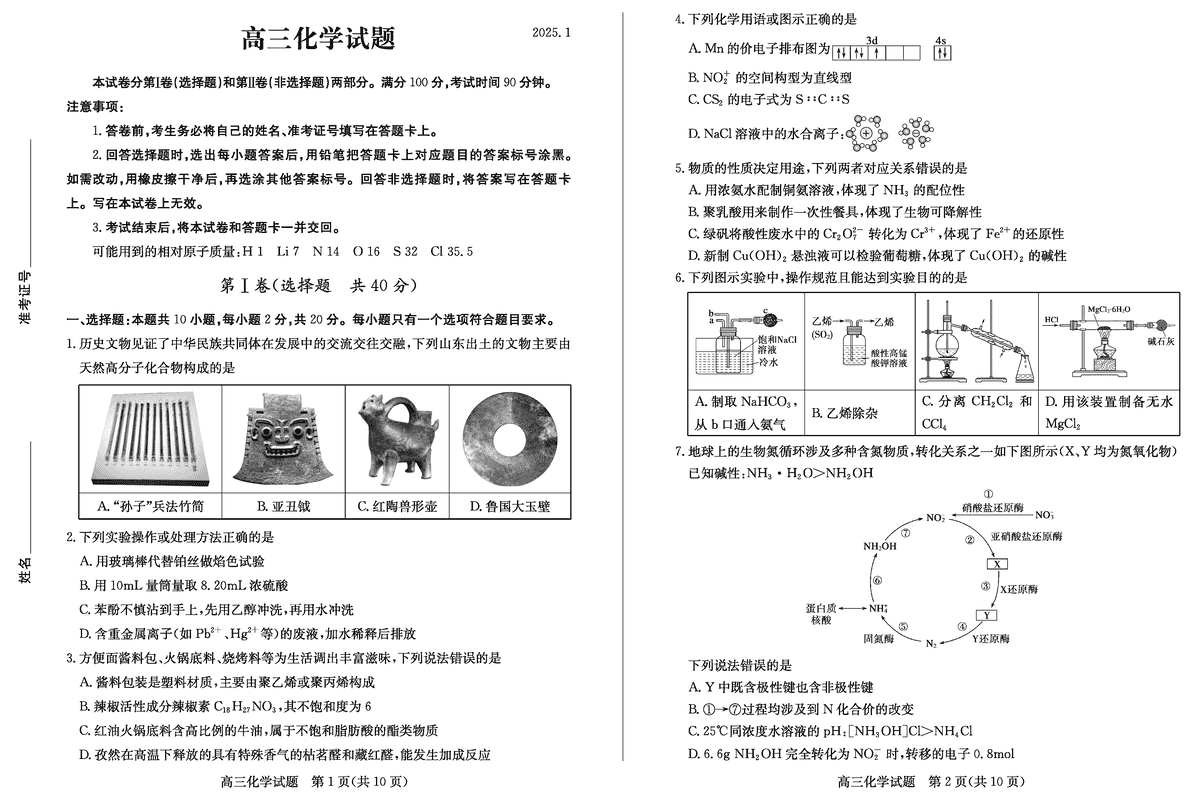 山东德州2025年高三上学期1月期末化学考试已于近日开考,为方便考生考后及时查看考试情况,查漏补缺、弥补不足,本文整理了试题答案解析相关信息!