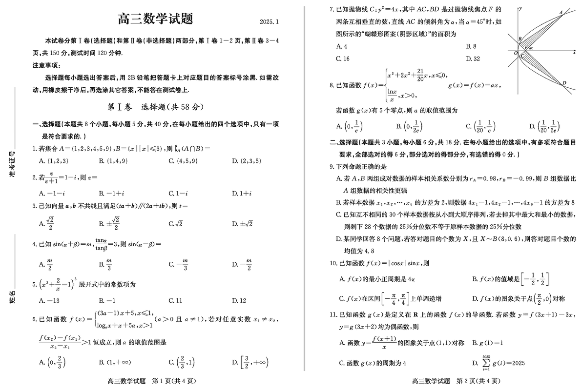 山东德州2025年高三上学期1月期末数学考试已于近日开考,为方便考生考后及时查看考试情况,查漏补缺、弥补不足,本文整理了试题答案解析相关信息!