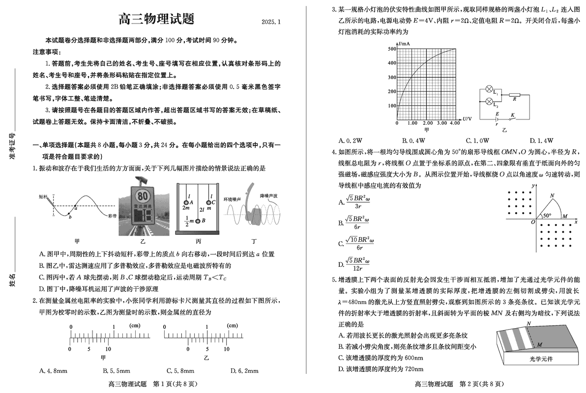 山东德州2025年高三上学期1月期末物理考试已于近日开考,为方便考生考后及时查看考试情况,查漏补缺、弥补不足,本文整理了试题答案解析相关信息!