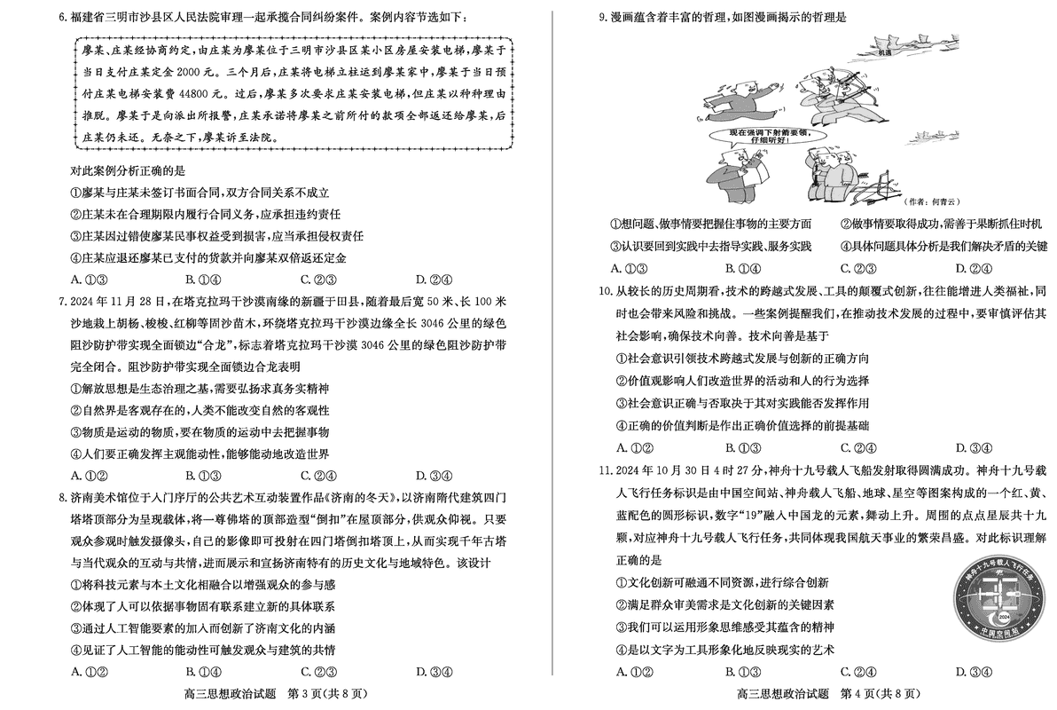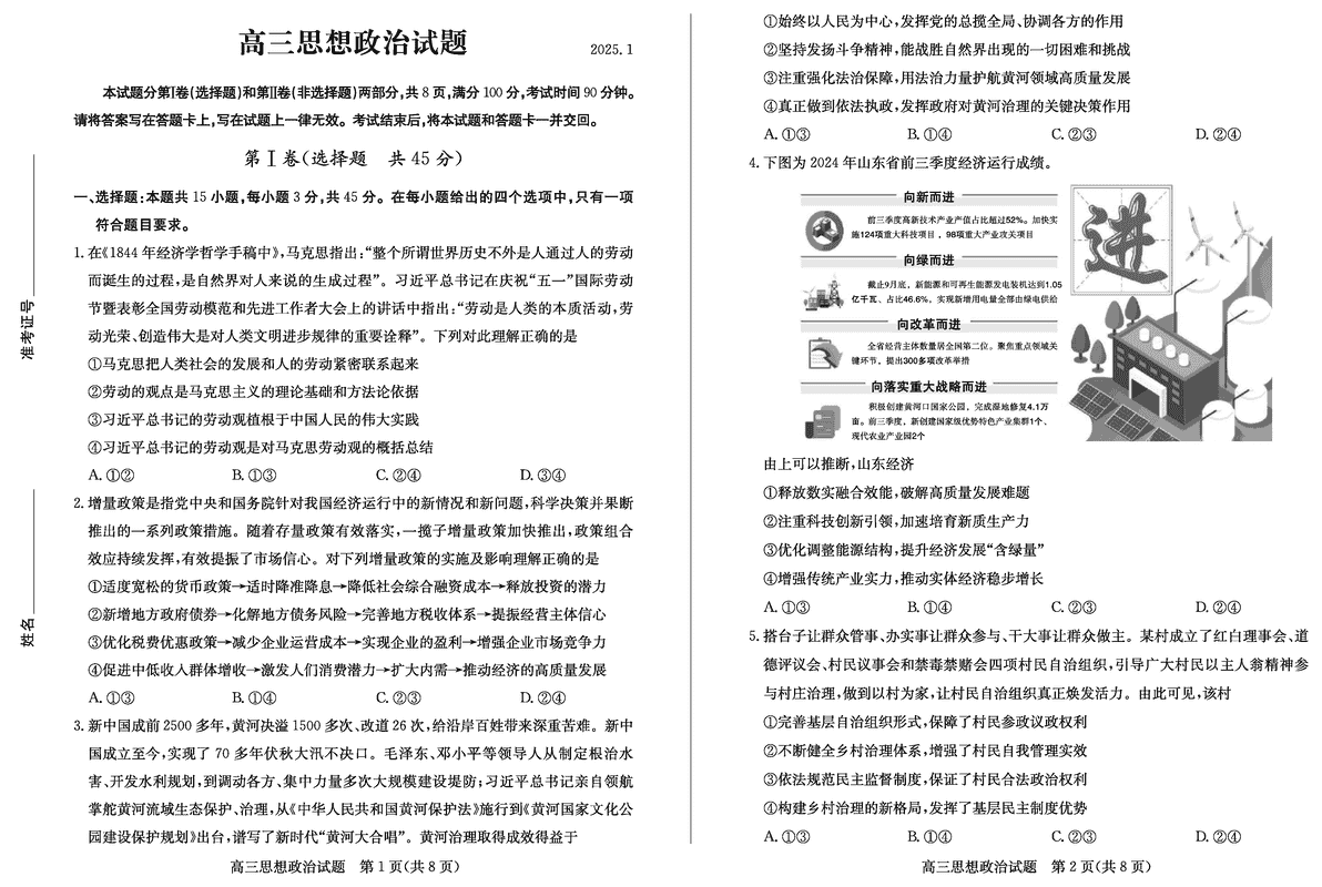 山东德州2025年高三上学期1月期末政治试题及答案