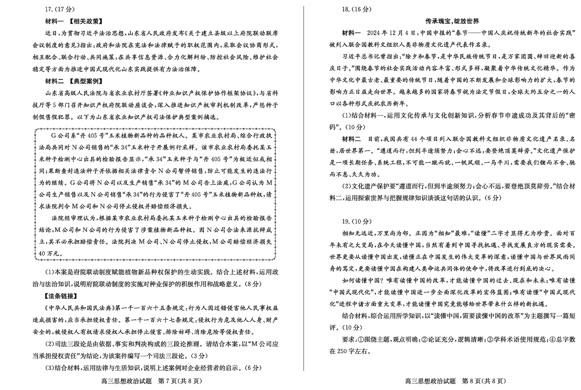 山东德州2025年高三上学期1月期末政治考试已于近日开考,为方便考生考后及时查看考试情况,查漏补缺、弥补不足,本文整理了试题答案解析相关信息!