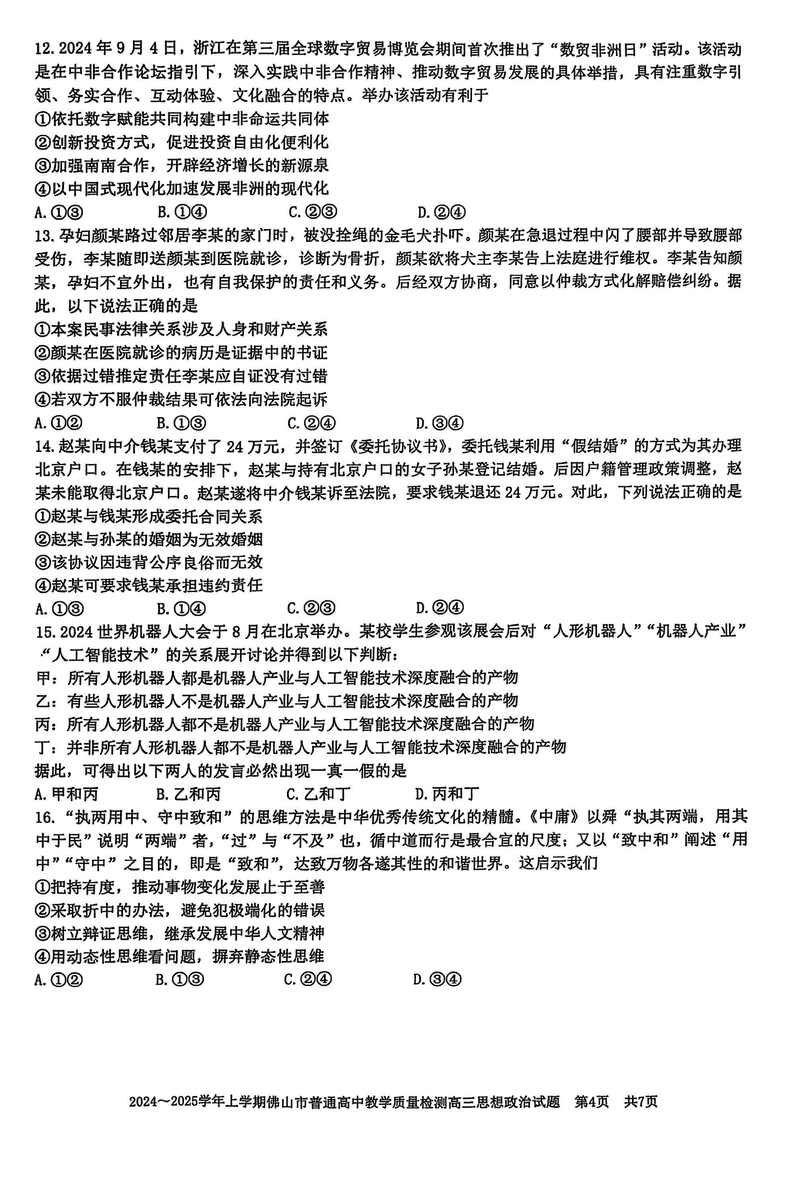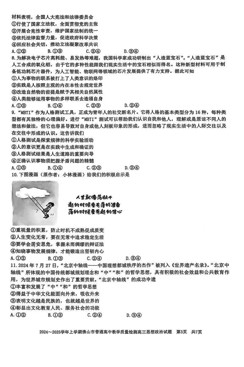 2025届佛山市高三上学期一模政治试题及答案 时间:2025-01-20 广东 文综试题 2025届佛山市高三上学期一模政治考试已于近日开考,为方便考生考后及时查看考试情况,查漏补缺、弥补不足,本文整理了试题答案解析相关信息! 汇总:2025届佛山市高三上学期一模试题及答案汇总 政治试题及答案解析