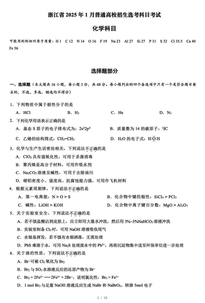 浙江首考2025年1月高三选考科目化学考试已于近日开考,为方便考生考后及时查看考试情况,查漏补缺、弥补不足,本文整理了试题答案解析相关信息!