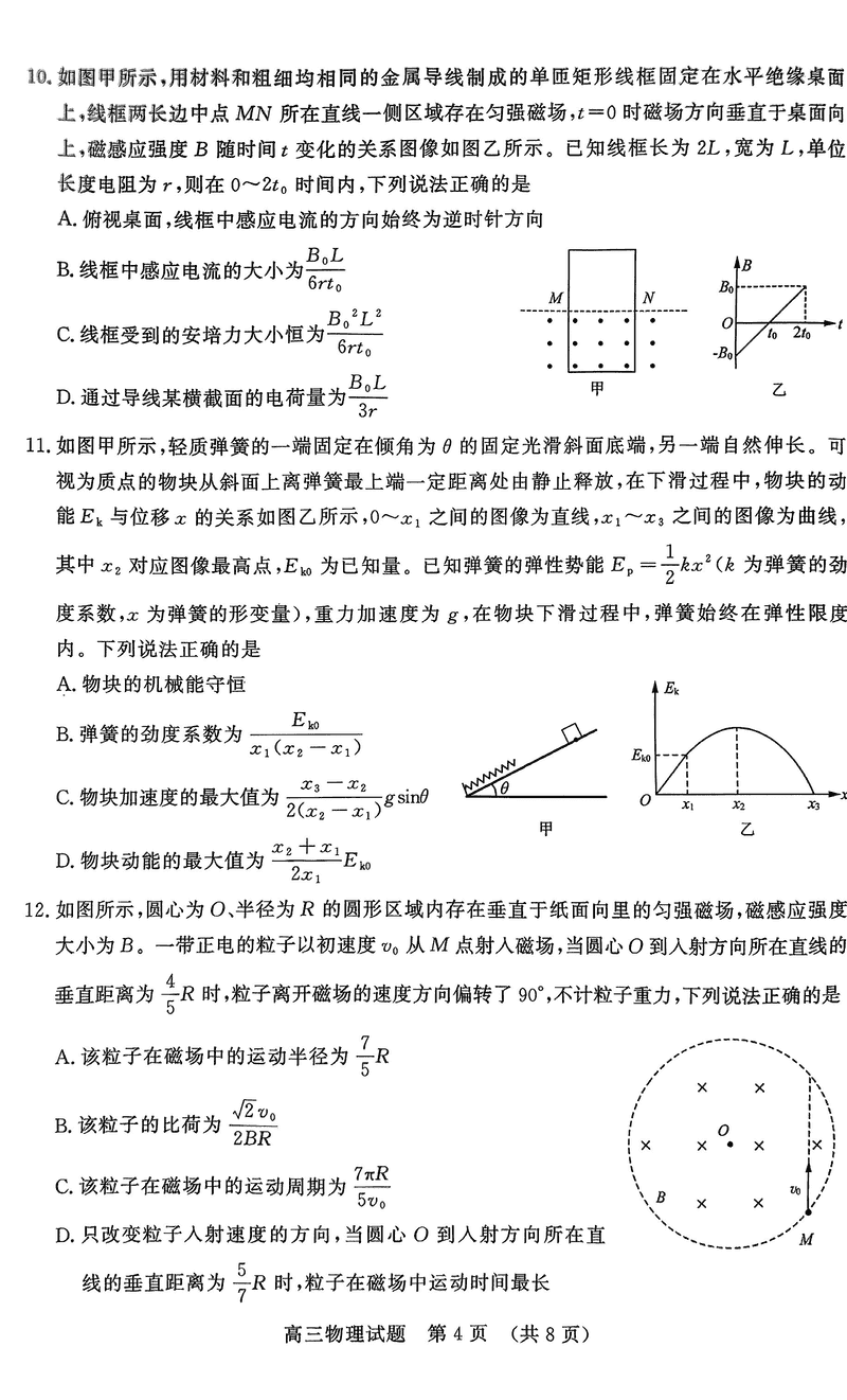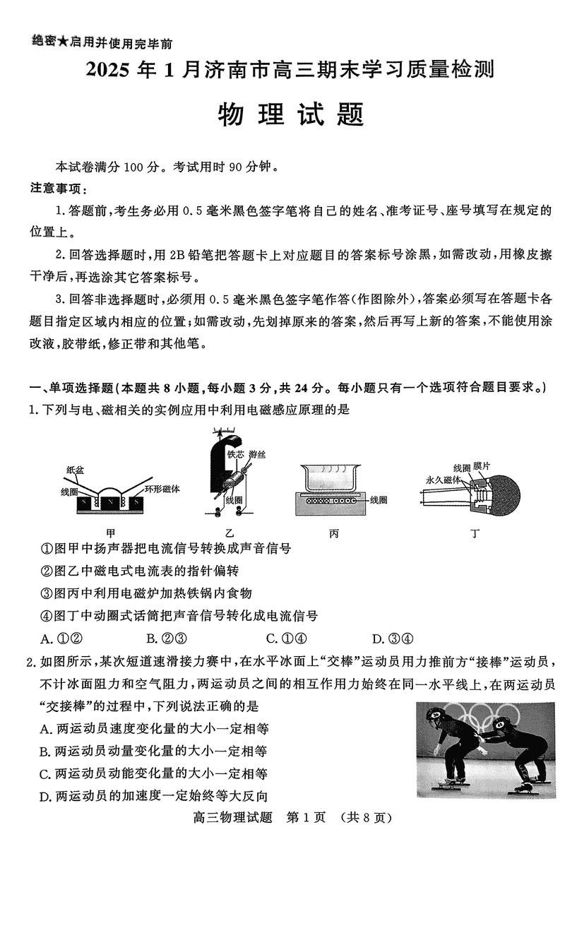 山东济南2025年高三上学期1月期末物理试题及答案