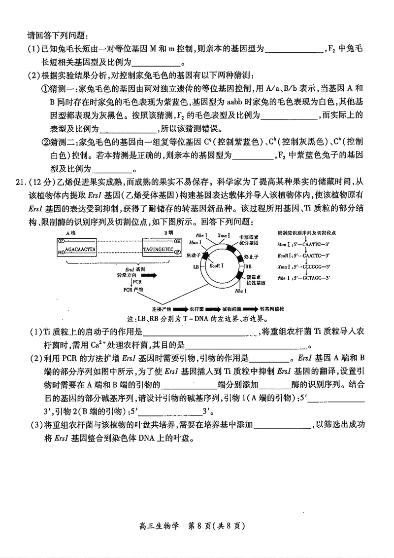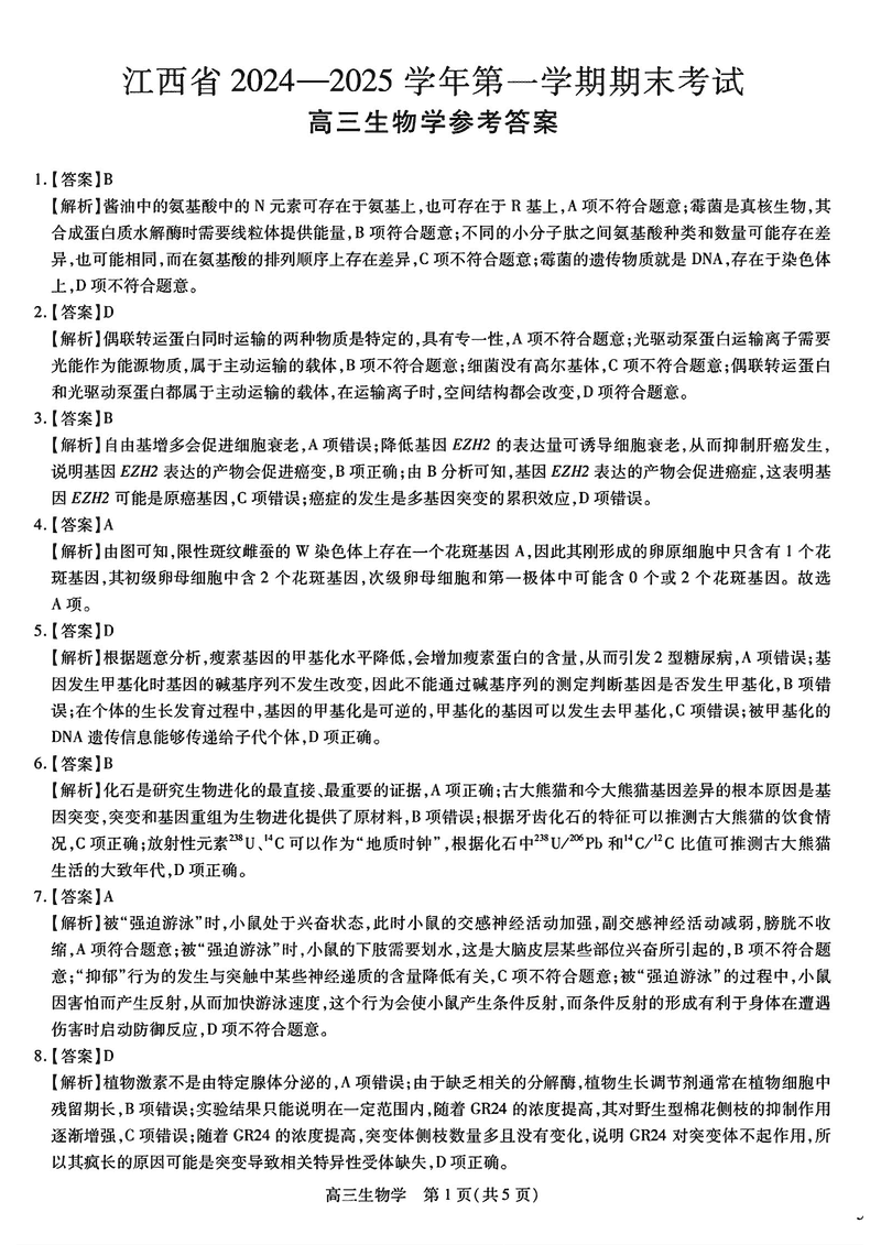江西智慧上进教育稳派联考2025届高三上1月期末生物考试已于近日开考,为方便考生考后及时查看考试情况,查漏补缺、弥补不足,本文整理了试题答案解析相关信息!