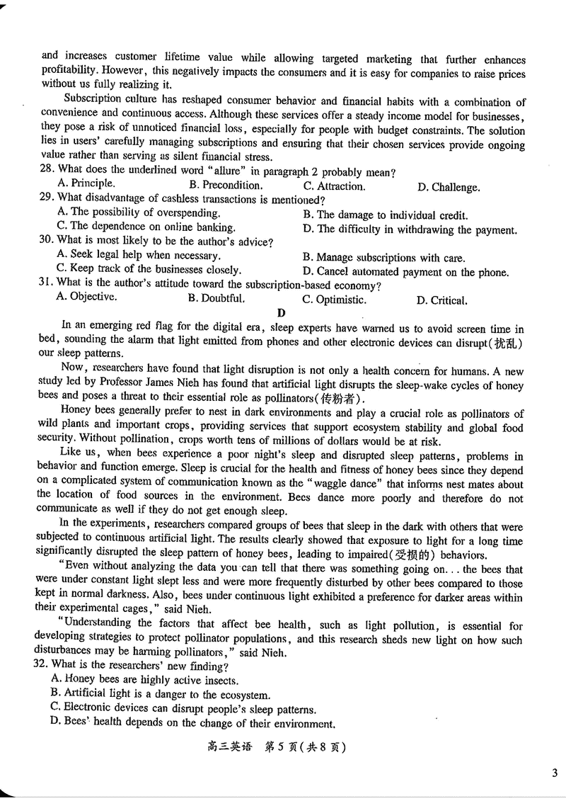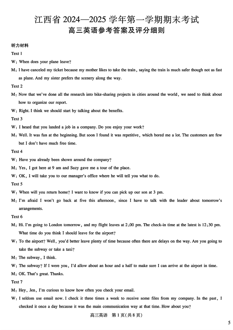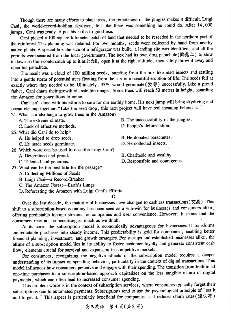 江西智慧上进教育稳派联考2025届高三上1月期末英语试题及答案