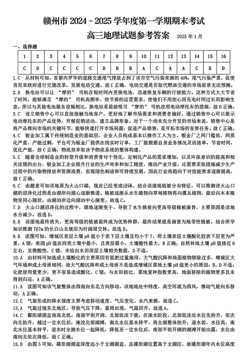 江西赣州2025年1月高三上学期期末地理考试已于近日开考,为方便考生考后及时查看考试情况,查漏补缺、弥补不足,本文整理了试题答案解析相关信息!