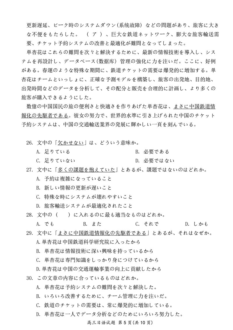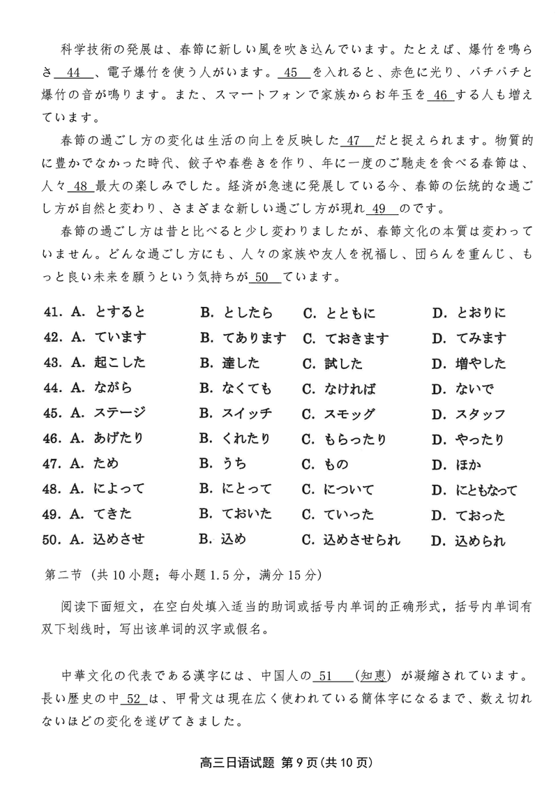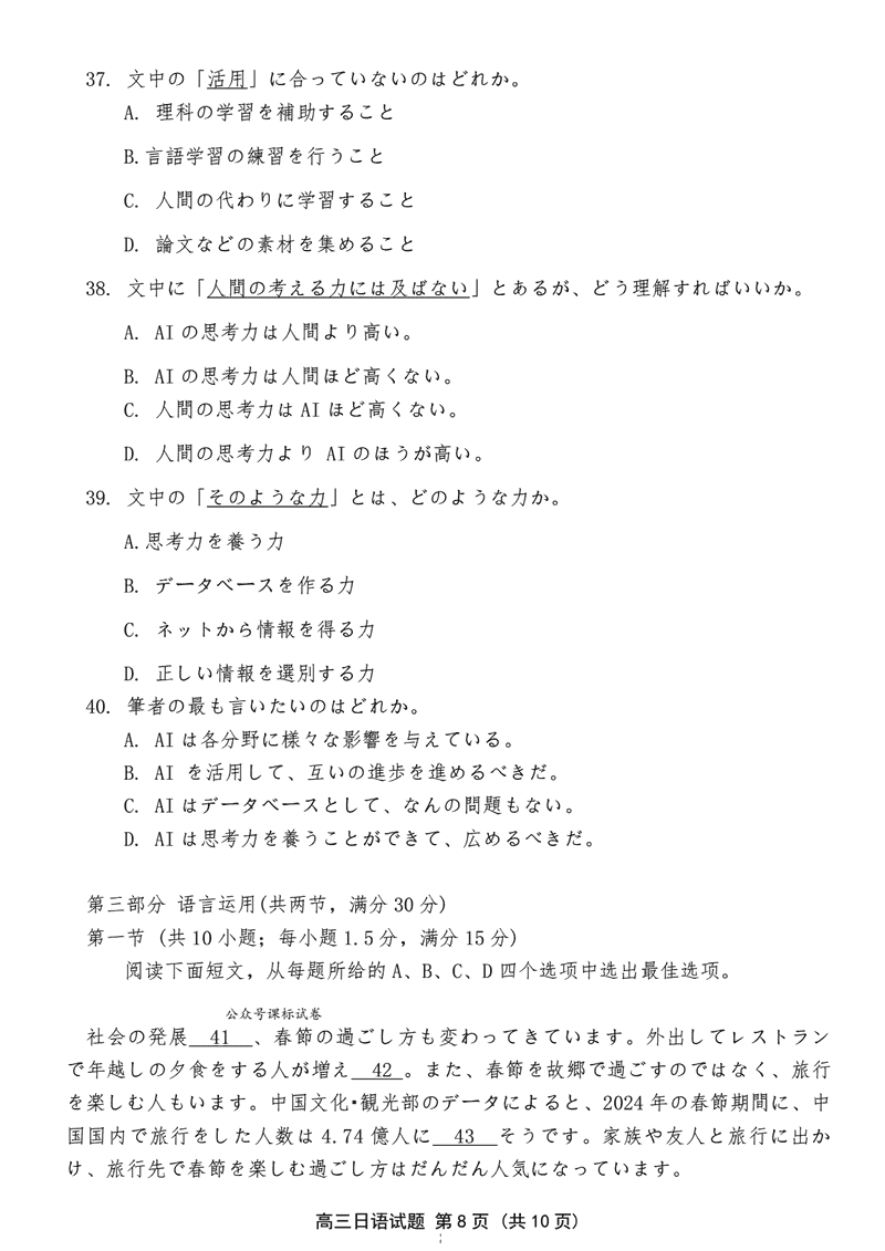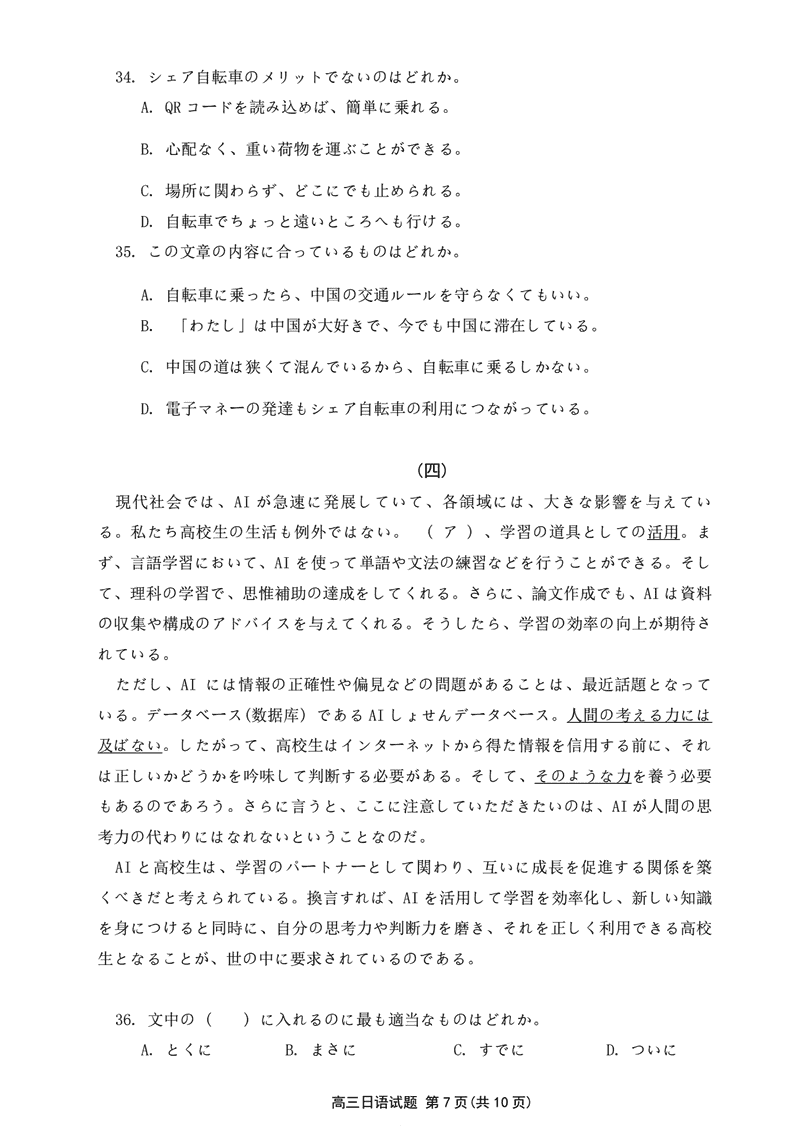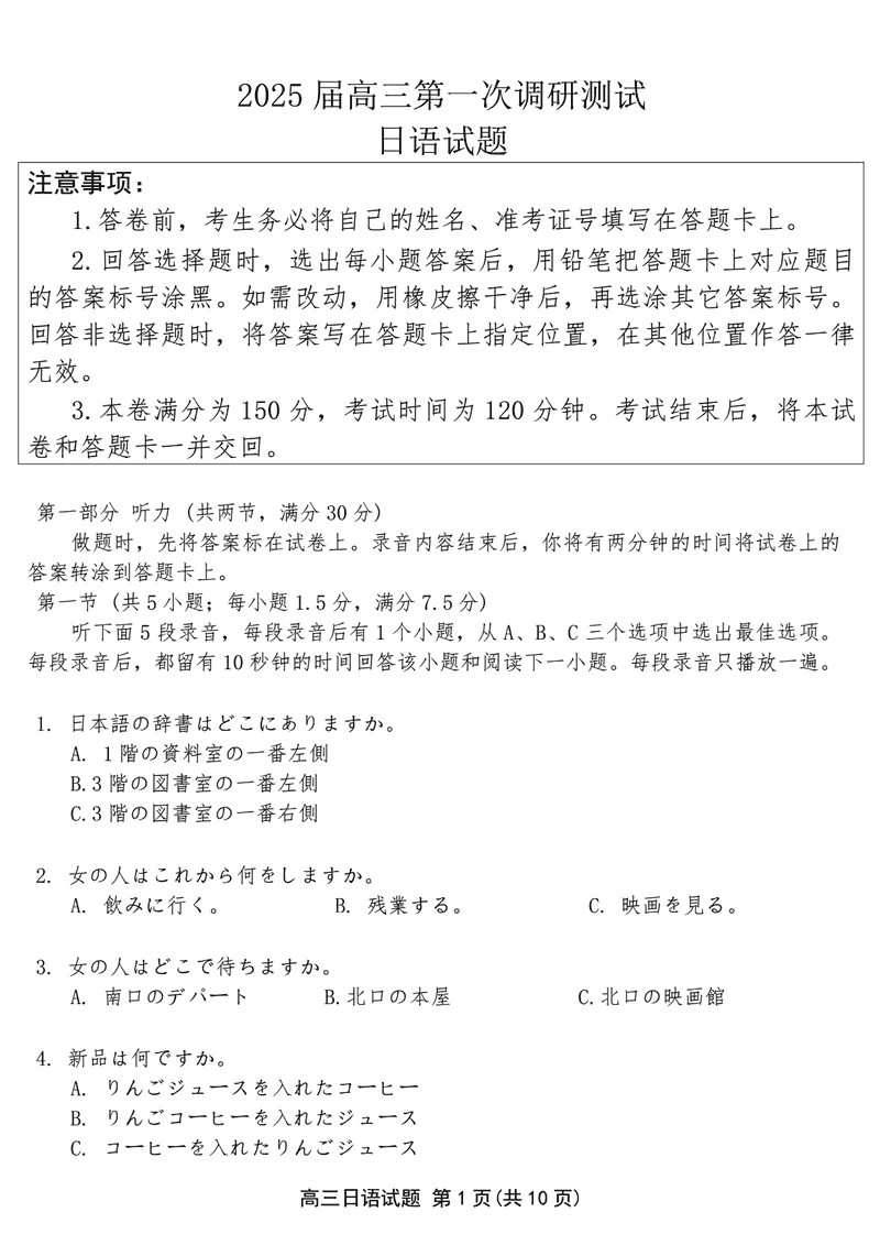苏北四市2025届高三第一次调研日语试题及答案 时间:2025-01-20 江苏 英语试题 苏北四市(徐州、宿迁、淮安、连云港)2025届高三第一次调研日语考试已于近日开考,为方便考生考后及时查看考试情况,查漏补缺、弥补不足,本文整理了试题答案解析相关信息! 汇总:苏北四市2025届高三第一次调研测试试题及答案汇总 日语试题及答案解析