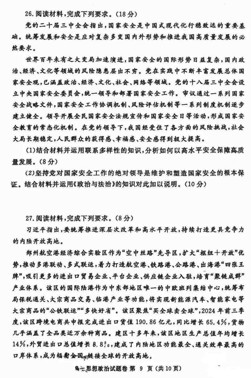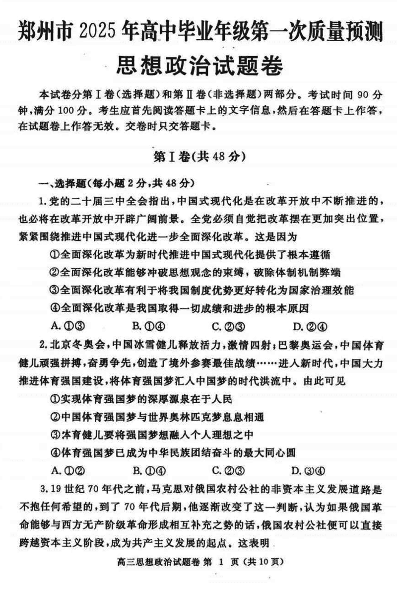 河南郑州2025届高三第一次质量预测政治试题及答案 时间:2025-01-20 河南 文综试题 河南郑州2025届高三第一次质量预测政治考试已于近日开考,为方便考生考后及时查看考试情况,查漏补缺、弥补不足,本文整理了试题答案解析相关信息! 汇总:河南郑州2025届高三第一次质量预测试题及答案汇总 政治试题及答案解析
