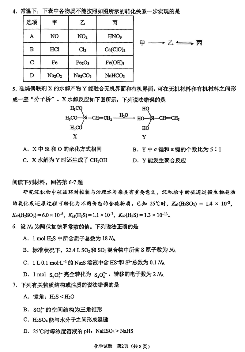 安徽合肥2025届高三第一次教学质检化学试题及答案