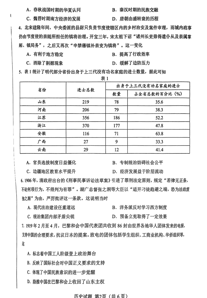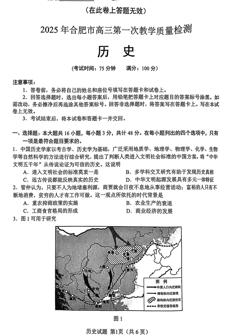 安徽合肥2025届高三第一次教学质检历史试题及答案